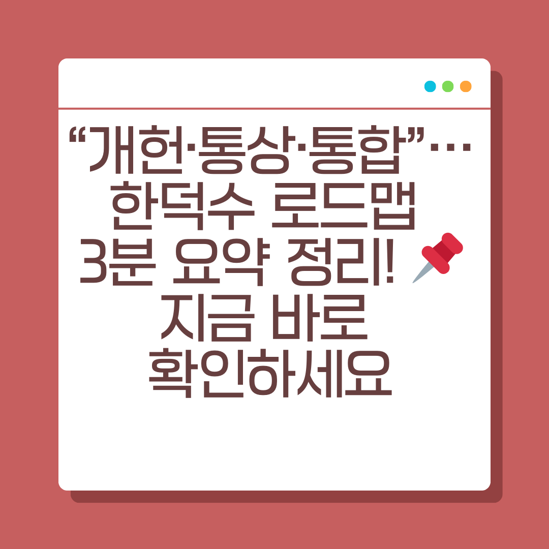 한덕수 전 국무총리가 밝힌 ‘개헌·통상·통합’ 3대 국가 로드맵, 단 3분 안에 핵심만 정리해드립니다.