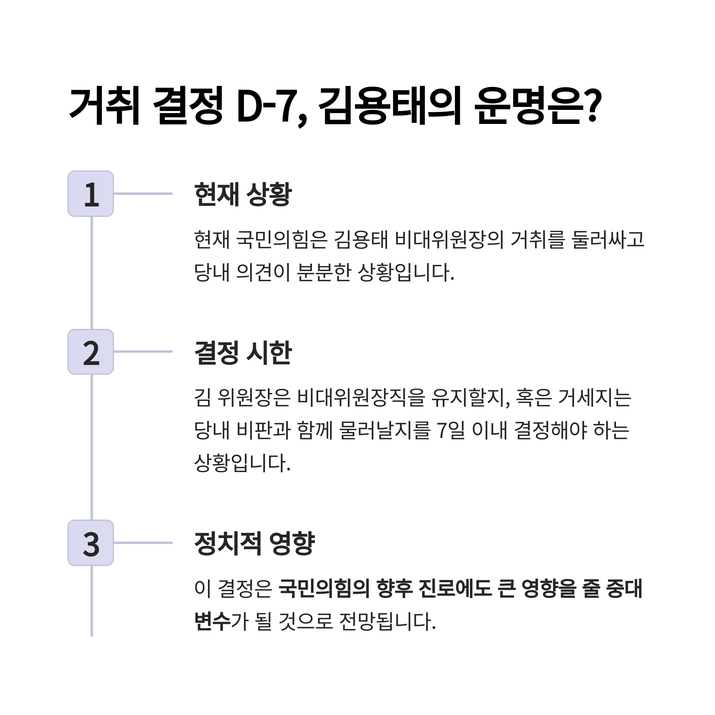 현재 국민의힘은 김용태 비대위원장의 거취를 둘러싸고