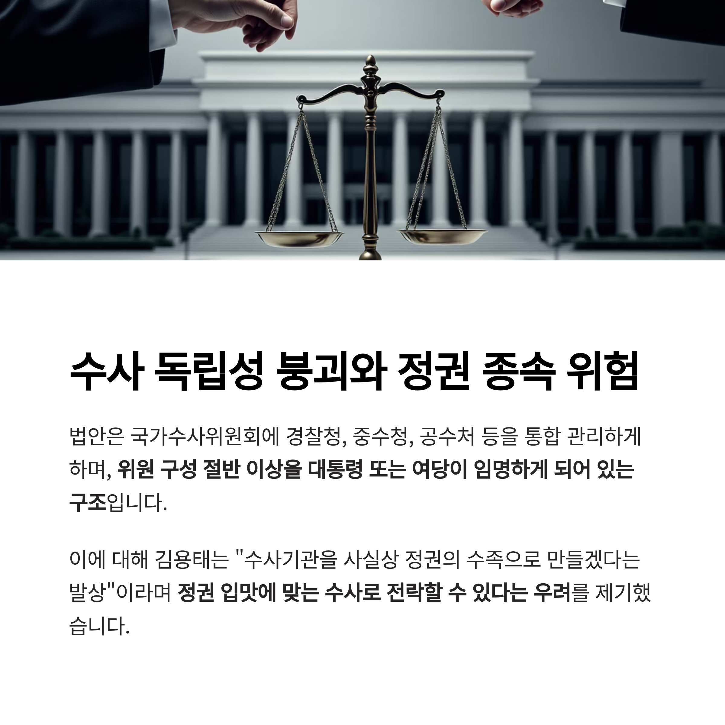 | 김용태 입장 | 위헌적 발상, 권력 집중, 수사 독립성 침해 우려 |