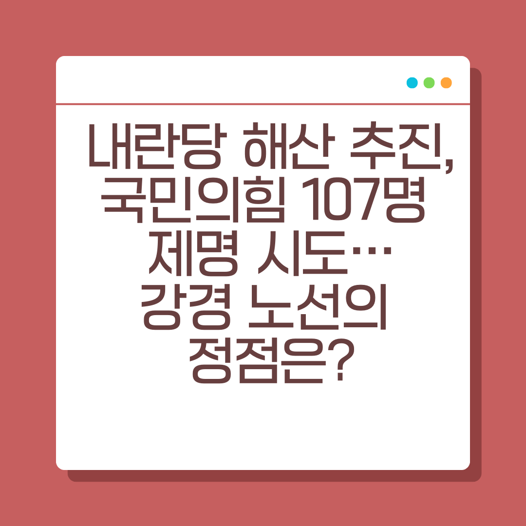 국민의힘 내에서 ‘내란 혐의’를 언급하며 강경파 의원 107명에 대한 제명 시도가 본격화되고 있습니다. 당내 분열이 극단적인 형태로 번지면서, 정치적 파장이 갈수록 커지고 있는데요. 국민들은 이 사안을 어떻게 받아들이고 있는지, 제명 대상자들의 명단은 누구인지, 정치권 내 논쟁은 어디로 향하는지 정리해보겠습니다.