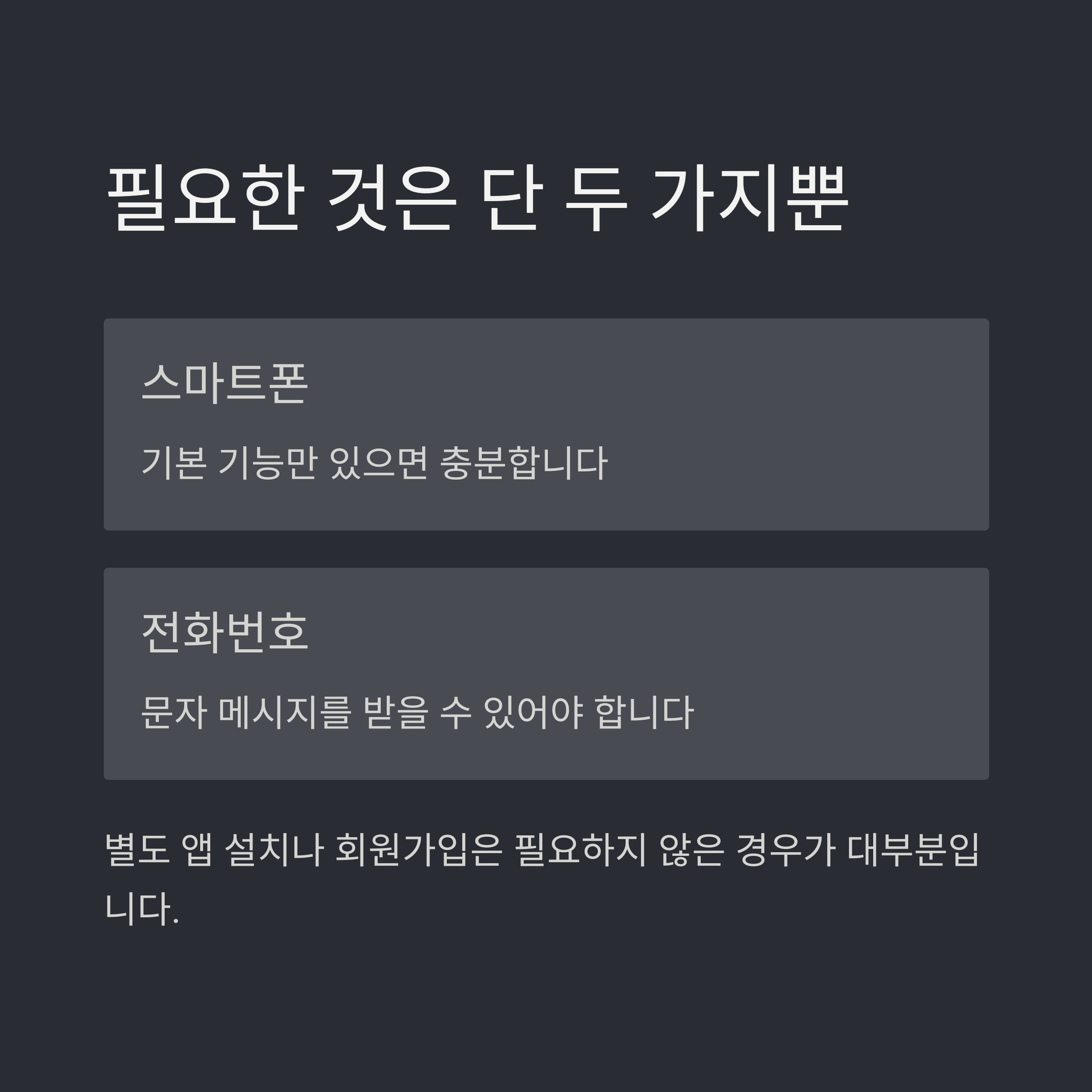 하지만 실제로는 핸드폰만 있으면 3분 안에 완료할 수 있는 간단한 과정입니다.