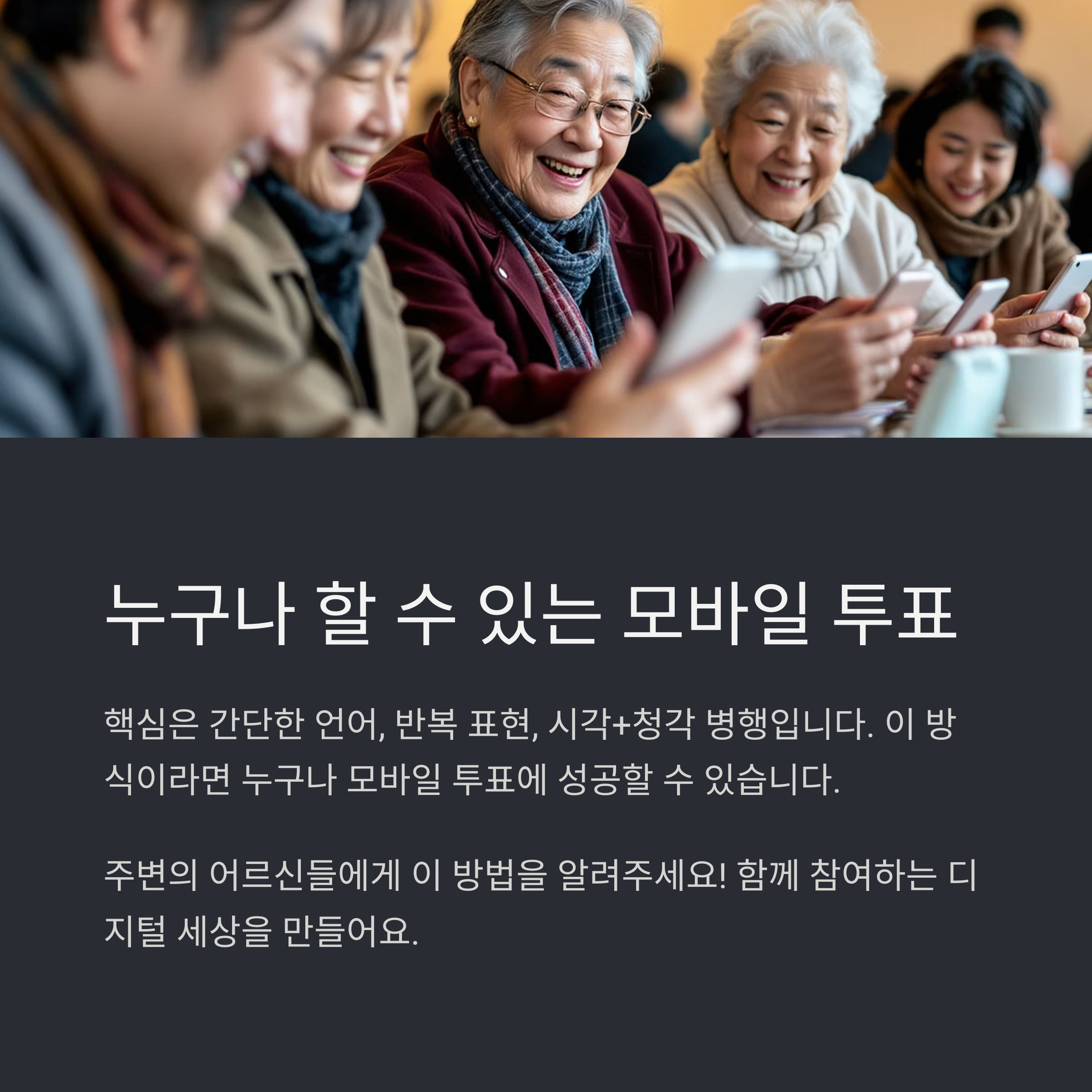 이 글에서는 손녀가 만든 '어머니 맞춤 설명서'를 바탕으로 초고령자도 쉽게 따라할 수 있는 모바일 투표 방법을 소개합니다.