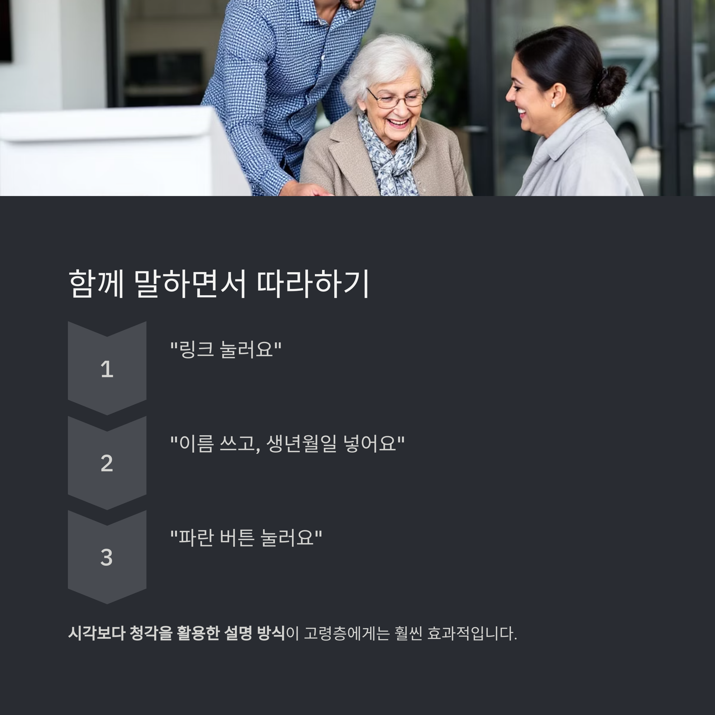 시각보다 청각을 활용한 설명 방식이 고령층에게는 훨씬 효과적입니다.