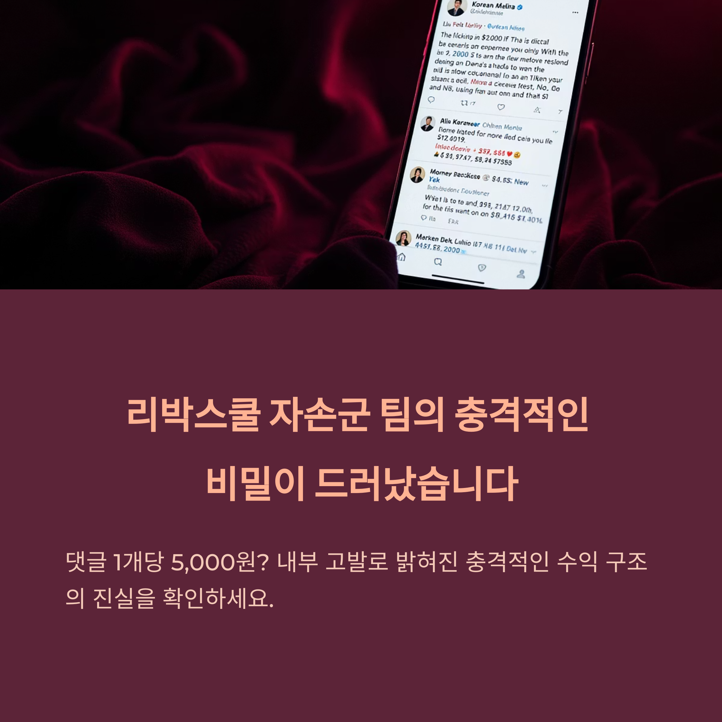 리박스쿨 '자손군' 팀의 내부 수익 구조와 관련된 폭로 영상이 공개되며