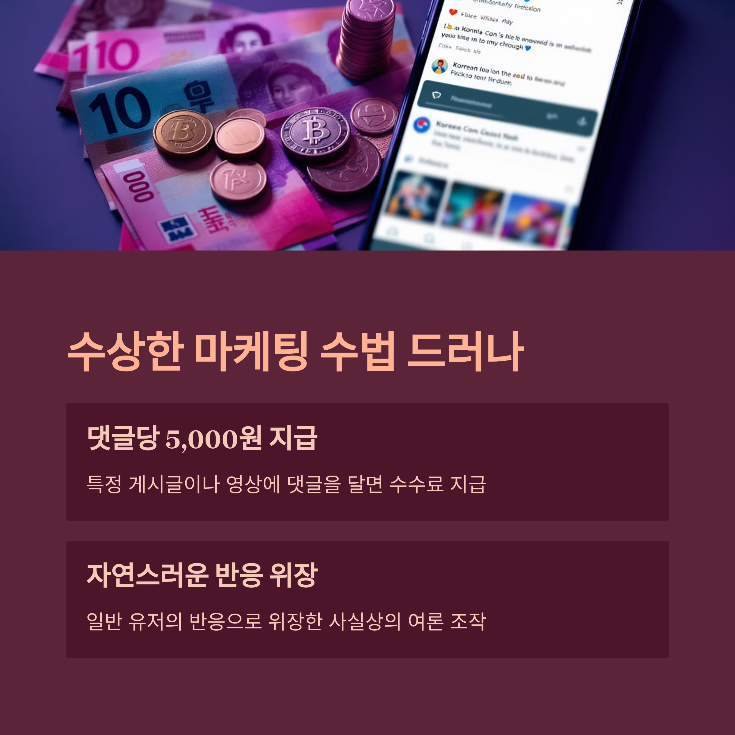 댓글 1개당 5,000원의 수수료를 지급했다고 밝혔습니다