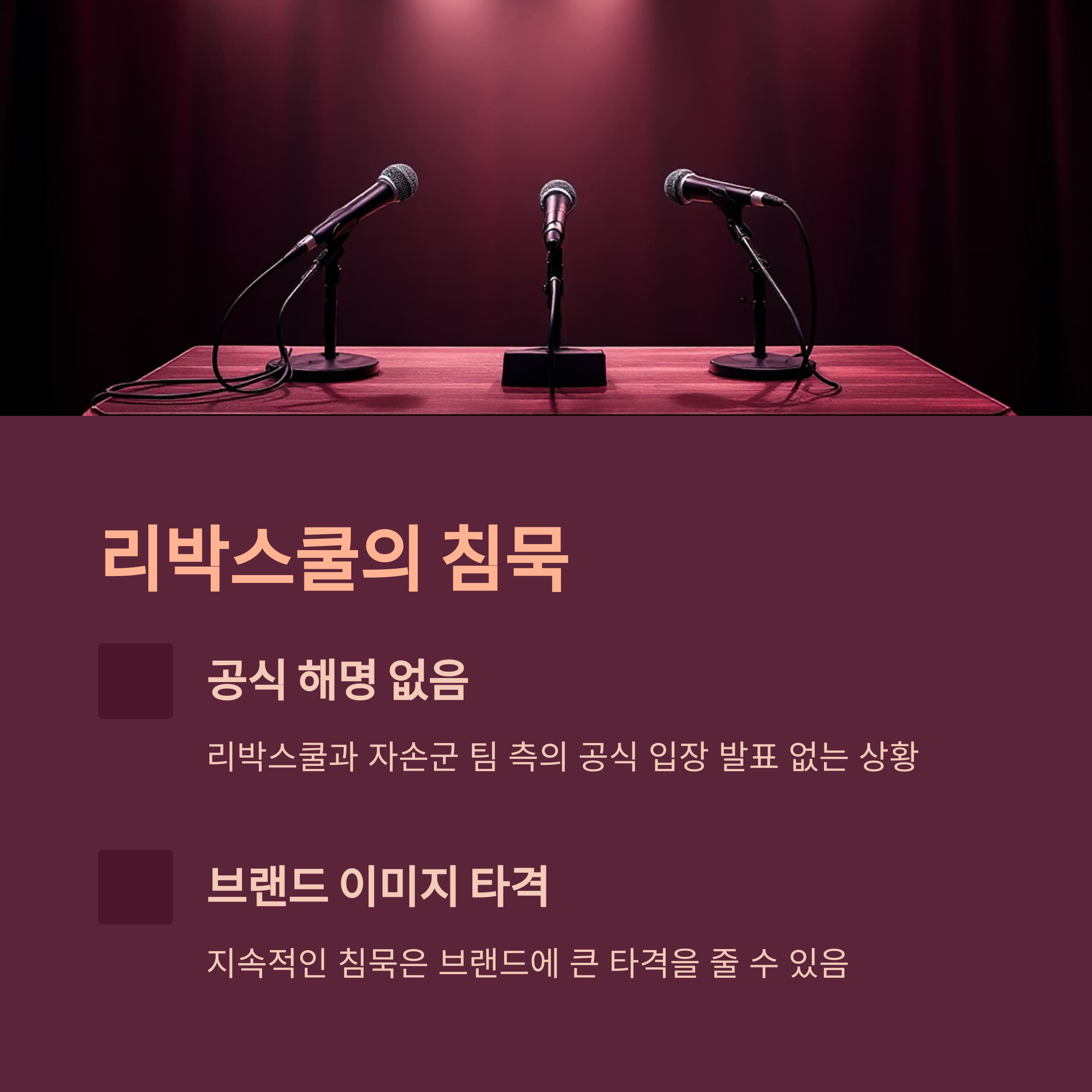 현재까지 리박스쿨 본사 및 자손군 팀 측의 공식적인 해명은 없는 상황입니다