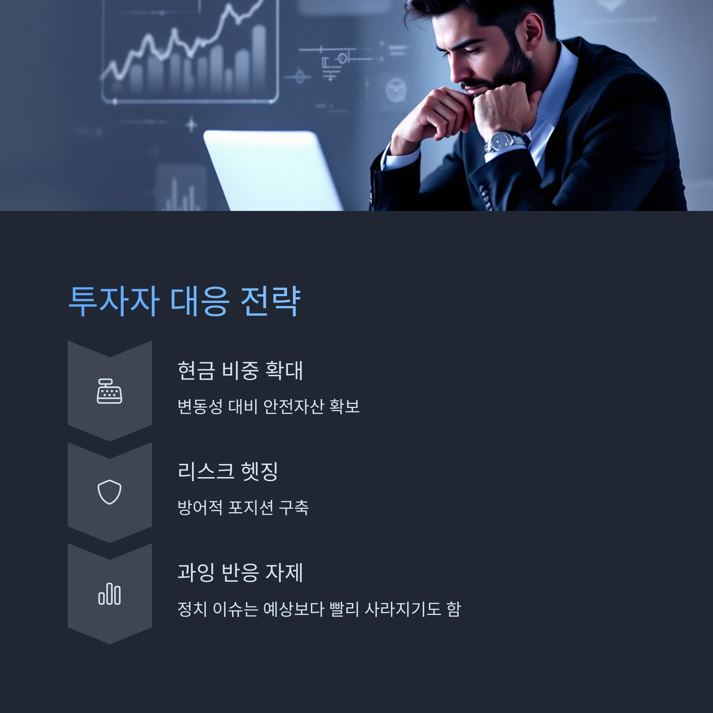 극단적 대응은 피하고 상황을 지속 모니터링하는 투자 태도입니다.