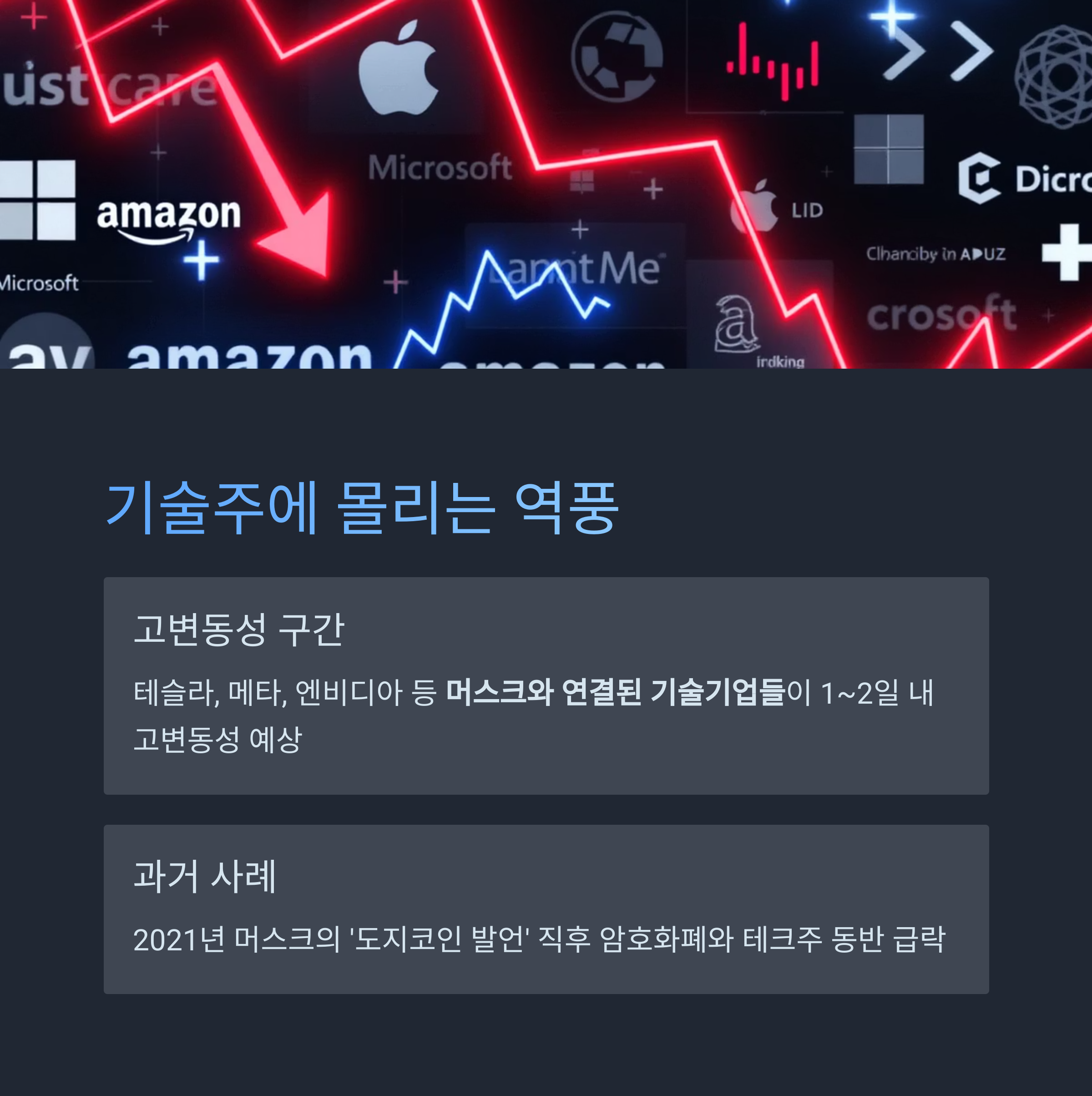 특히 테슬라, 메타, 엔비디아 등 머스크와 간접적으로 연결된 기술기업들의 주가는
