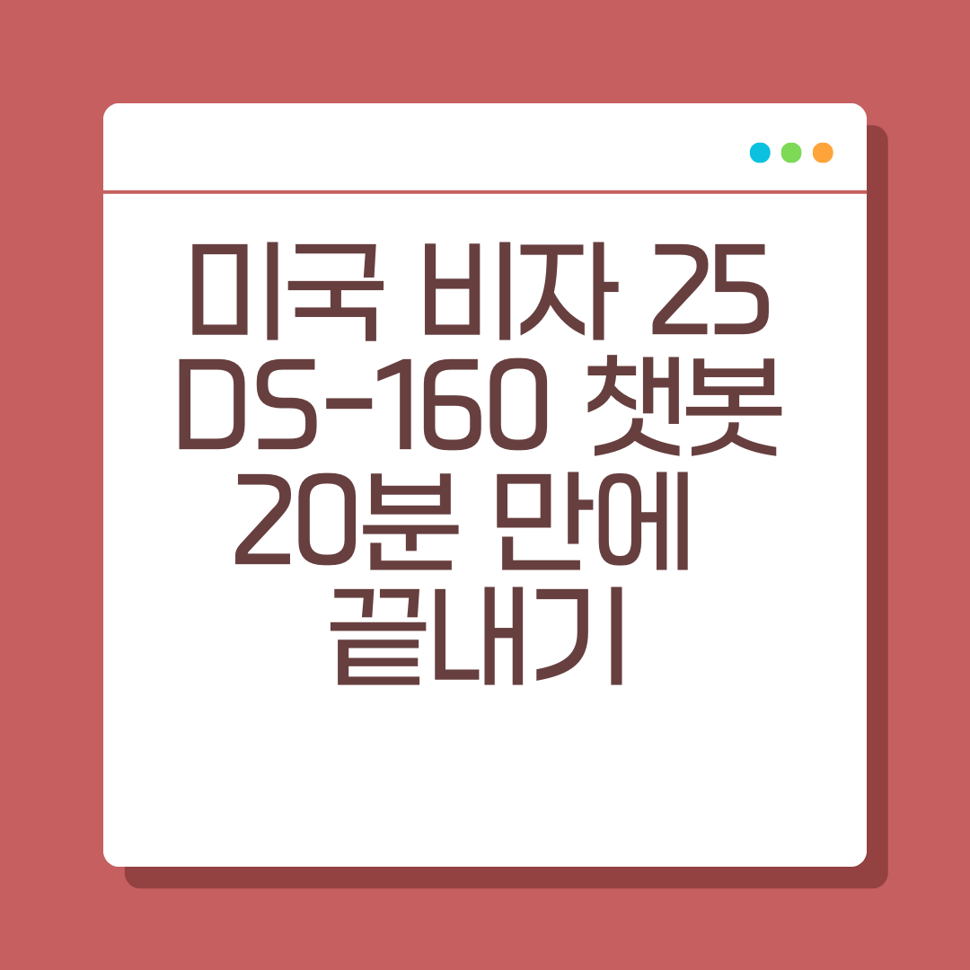 미국 비자를 신청할 때 가장 많은 분들이 막히는 부분이 바로 DS-160 작성을 어떻게 해야 할지에 대한 고민입니다. 하지만 2025년 기준으로, 챗봇 기술을 활용하면 복잡했던 이 과정을 20분 이내로 단축할 수 있습니다. 이 글에서는 DS-160의 기본 개념부터 챗봇으로 빠르게 처리하는 방법까지 한 번에 안내해드립니다.