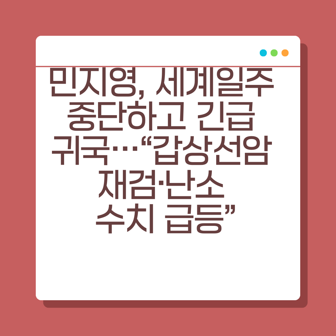 배우 민지영 씨가 세계일주 중 뜻밖의 건강 문제로 갑작스럽게 귀국했습니다. 유튜브 VLOG 영상에서 그녀는 “난소 수치가 비정상적으로 상승해 정밀 재검을 받게 되었다”고 밝혔습니다. 과거 갑상선암 수술 이력이 있는 그녀의 발언은 많은 팬들의 우려를 불러일으켰고, 관련 건강 이슈에 대한 관심도 급증하고 있습니다. 오늘 포스팅에서는 그녀가 겪고 있는 상황과 함께 여성 호르몬 및 갑상선 건강에 대해 자세히 알아보겠습니다.
