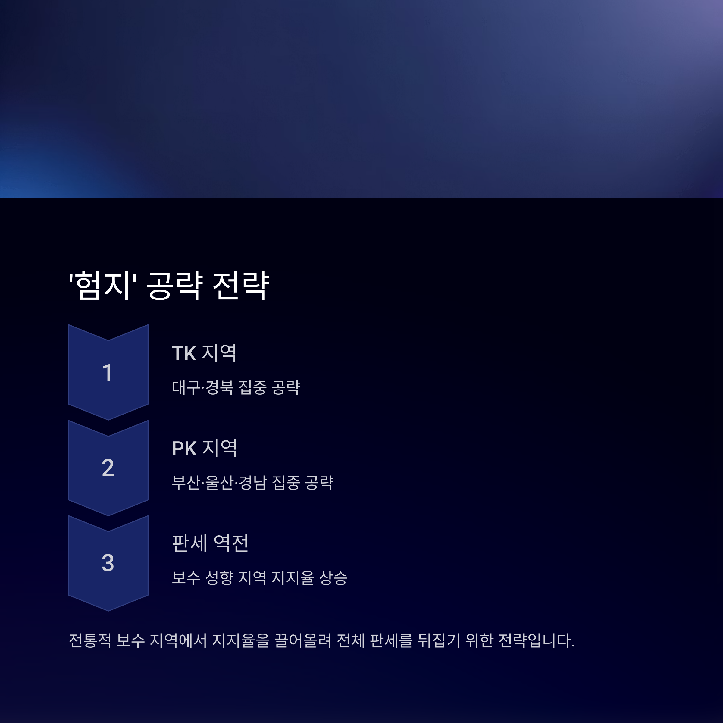 이재명 후보는 대선 막판에 대구·경북(TK)과 부산·울산·경남(PK) 지역을 집중 공략하고 있습니다. 이는 전통적으로 보수 성향이 강한 지역에서 지지율을 끌어올려 전체 판세를 뒤집기 위한 전략으로 풀이됩니다 .(연합뉴스)