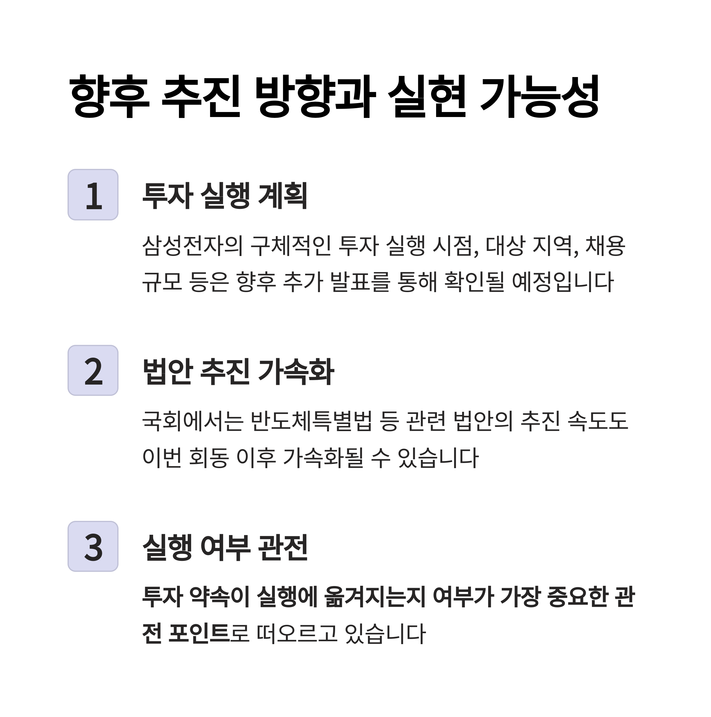 삼성전자의 구체적인 투자 실행 시점, 대상 지역, 채용 규모 등은