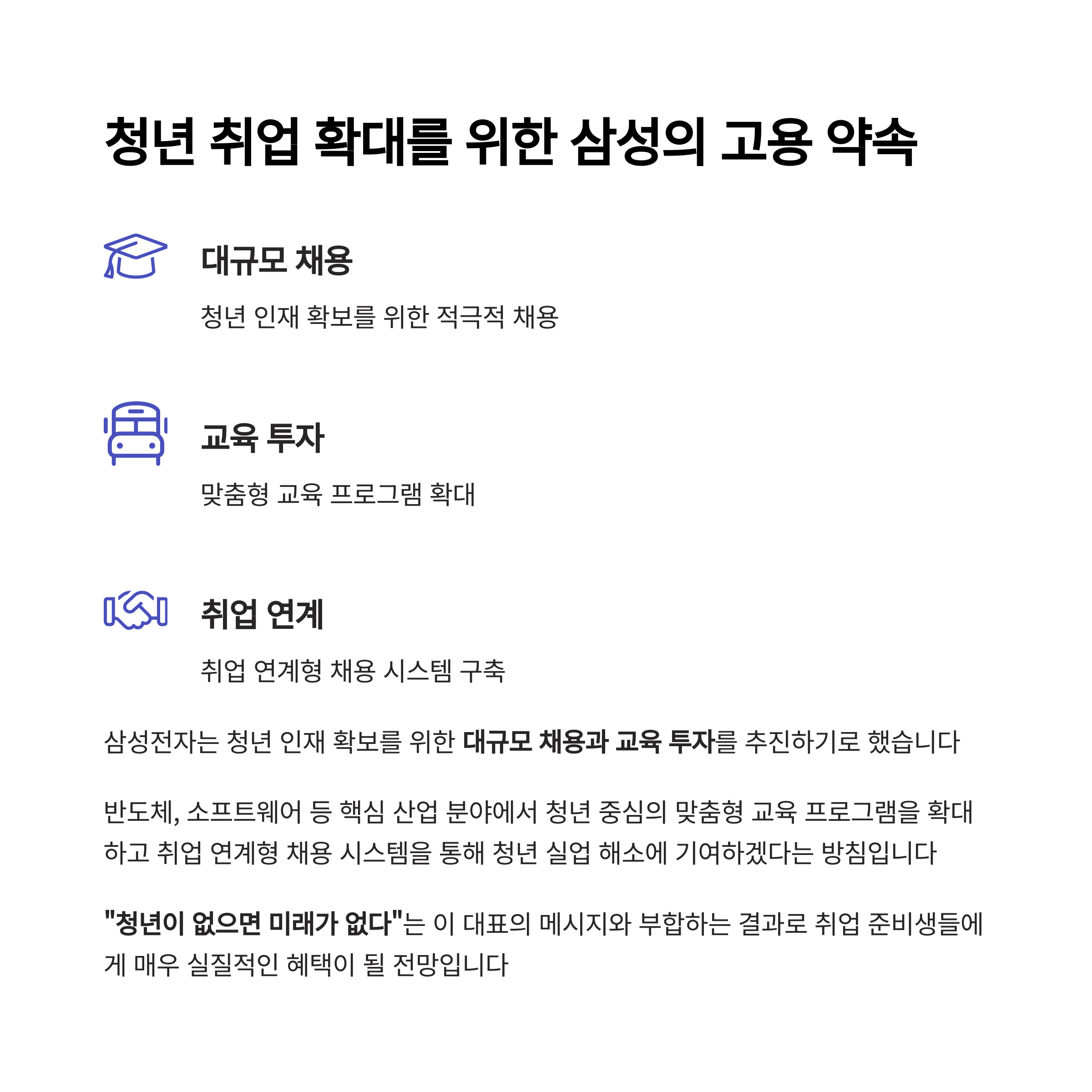 삼성전자는 청년 인재 확보를 위한 대규모 채용과 교육 투자를 추진하기로 했습니다
