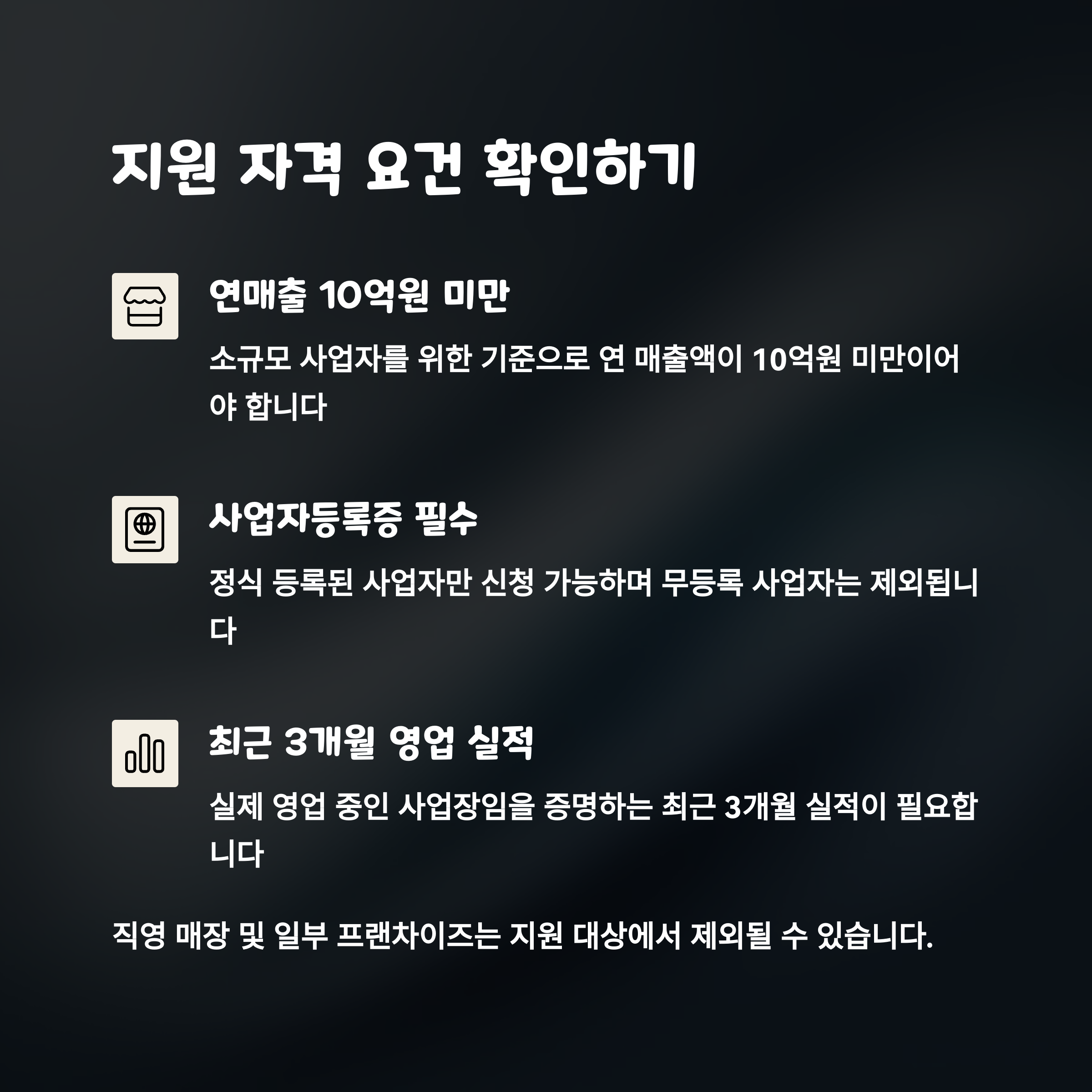 - 셋째, 매출 기준이나 업종 요건을 충족해야 합니다