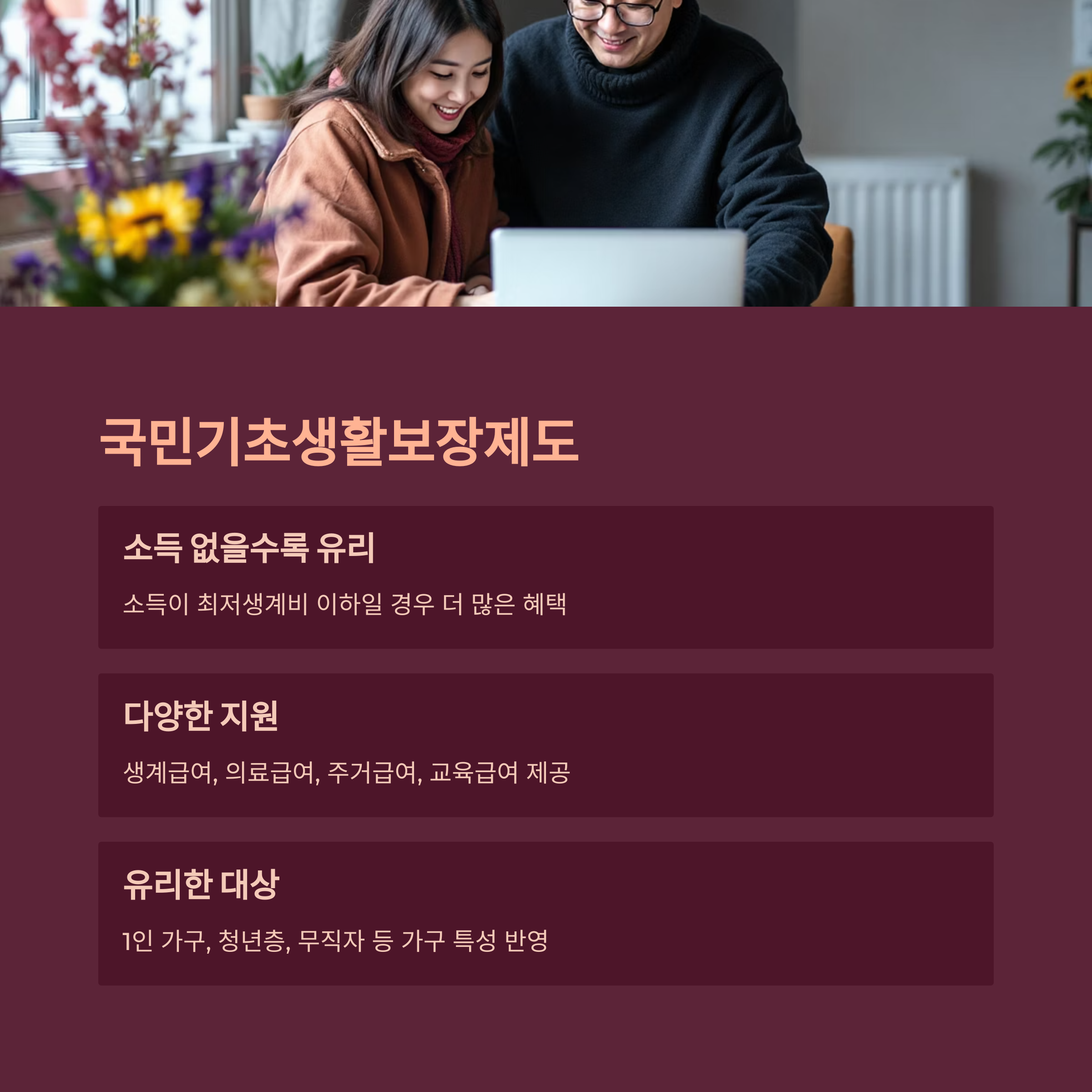 "소득이 전혀 없는 상태"가 오히려 지원 적합 조건으로 작용하는 경우가 많습니다.