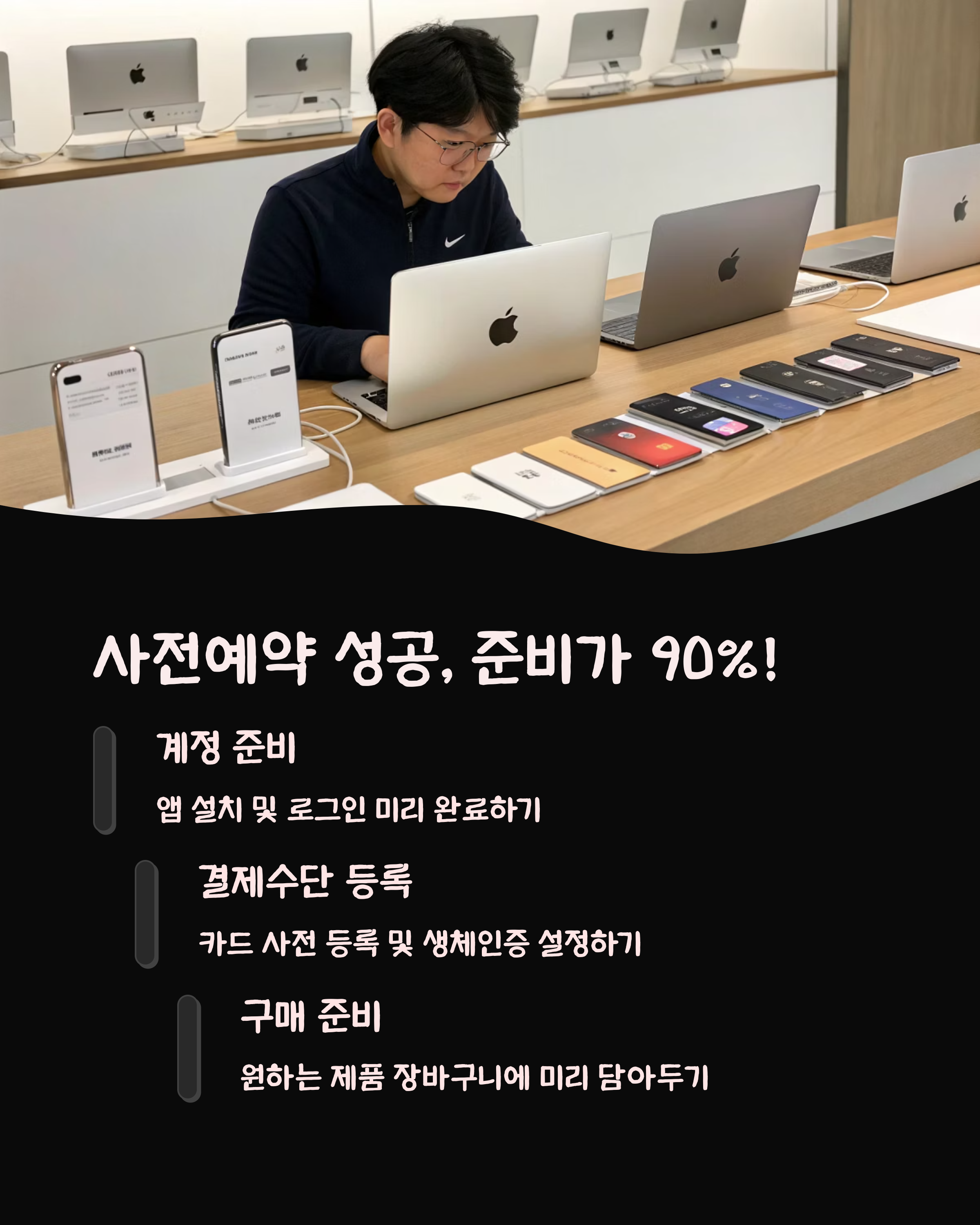 사전예약 성공 확률을 높이려면 계정 로그인 및 결제 카드 사전 등록은 필수입니다. 사이트 트래픽이 몰리는 시간에는 빠른 클릭보다 미리 준비된 정보가 승패를 가릅니다. 또한 사전예약은 단순 구매가 아닌 혜택, 배송, 할부 조건까지 종합적으로 비교해야 나에게 맞는 똑똑한 소비가 가능하니, 여러 채널의 정보를 꼼꼼히 비교해보는 것이 중요합니다.