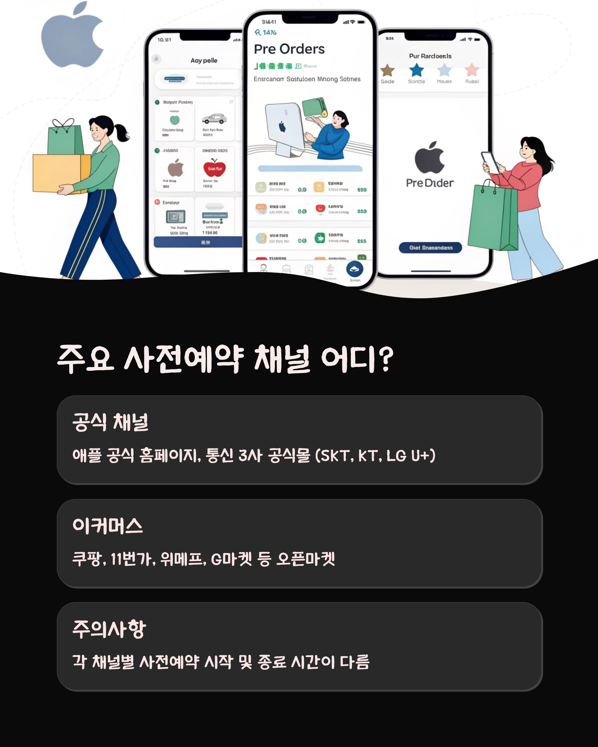 | 어디서 예약하나요? | 애플 공홈, 통신사(3사), 쿠팡, 11번가, 스마트스토어 등 |