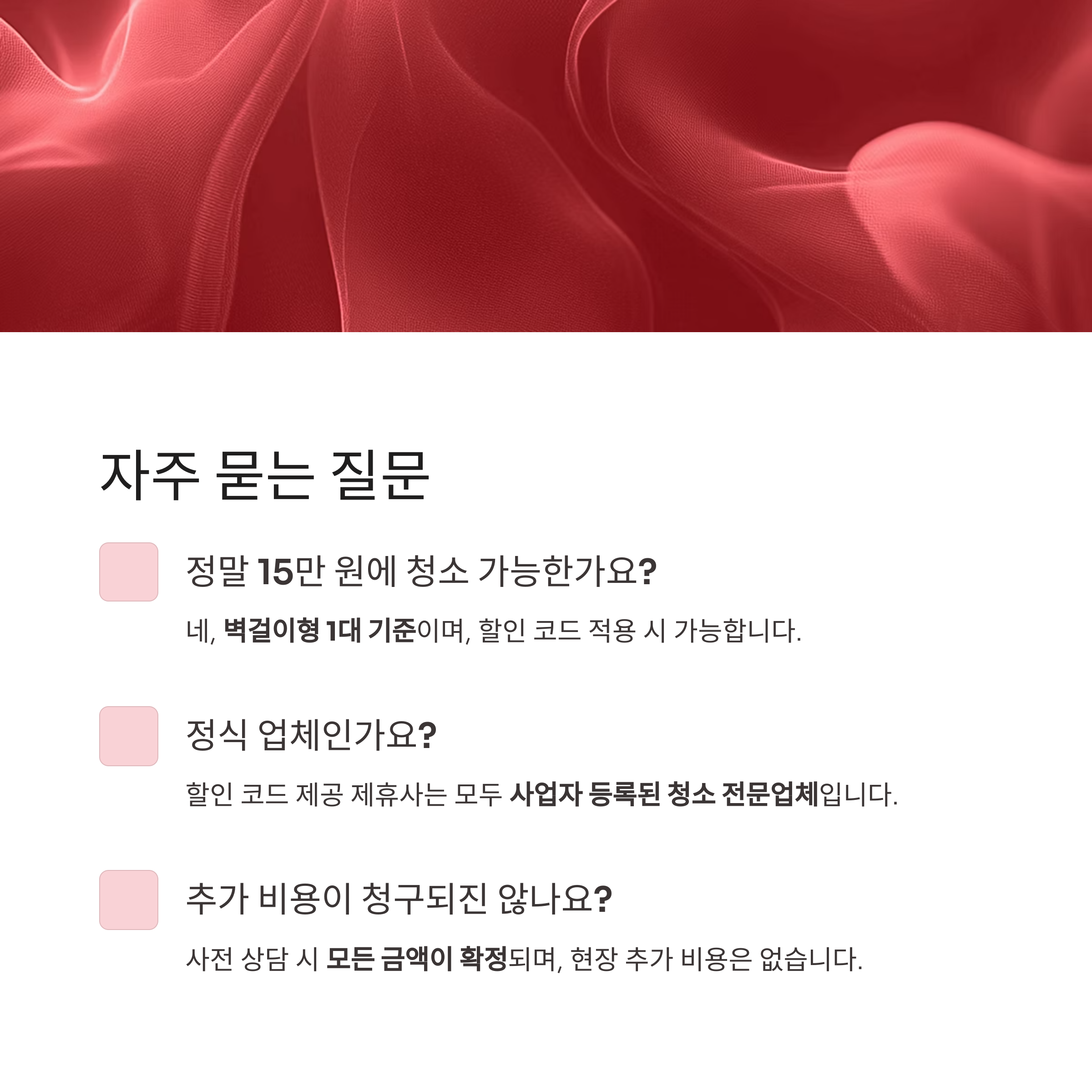 A. 할인 코드 제공 제휴사는 모두 사업자 등록된 청소 전문업체입니다.