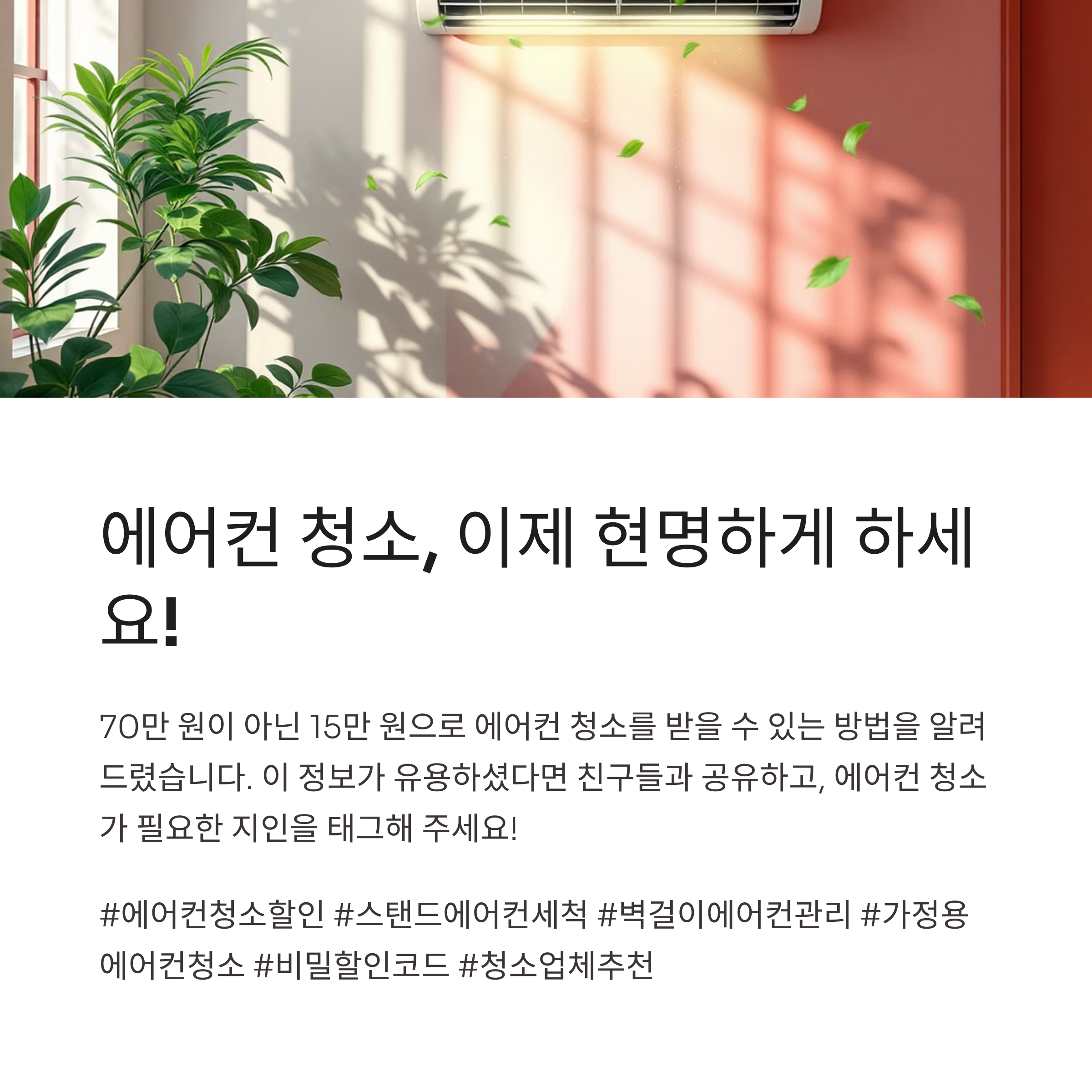 오늘은 특정 조건에서만 제공되는 에어컨 청소 업체의 비밀 할인 코드와 함께