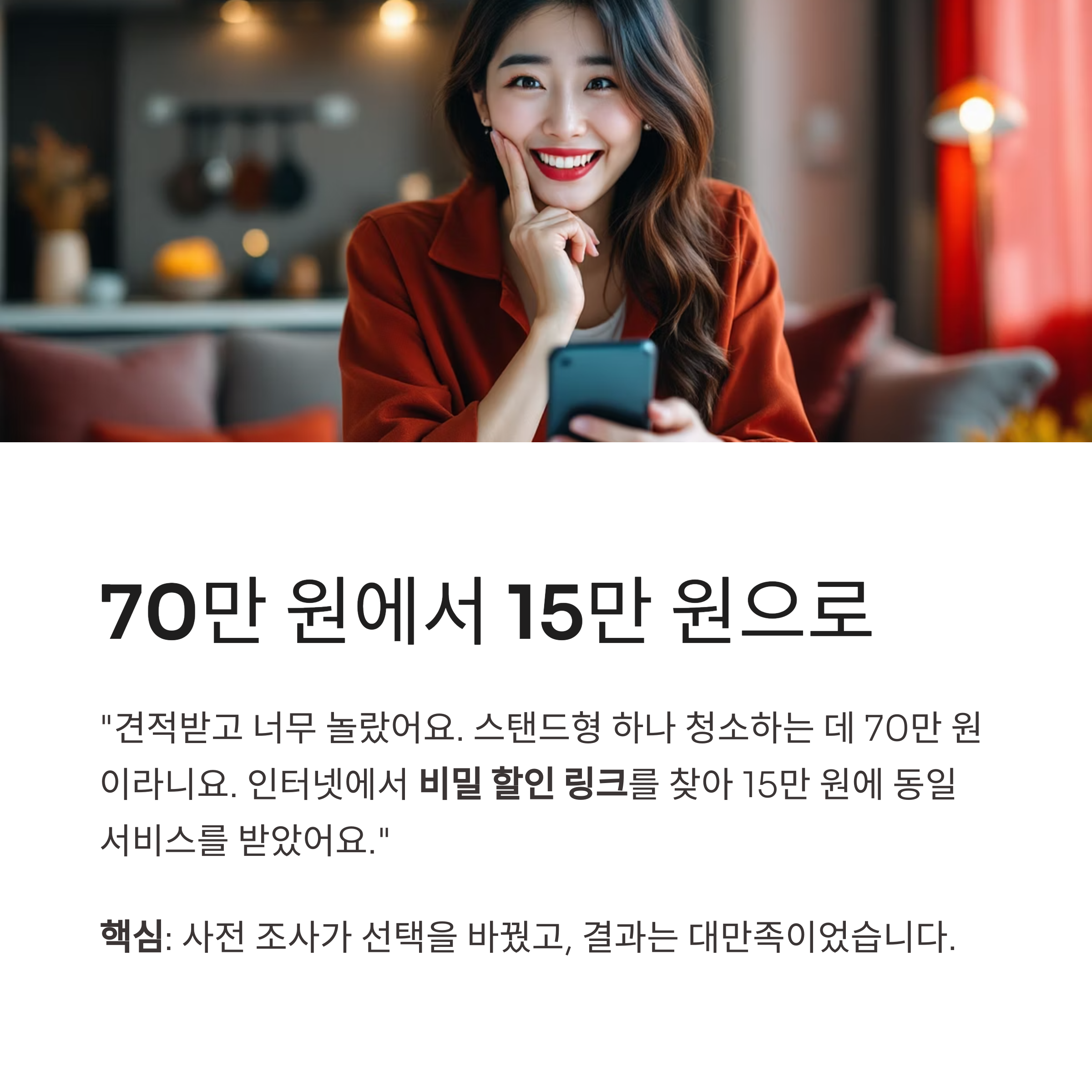 "견적받고 너무 놀랐어요. 스탠드형 하나 청소하는 데 70만 원이라니요.