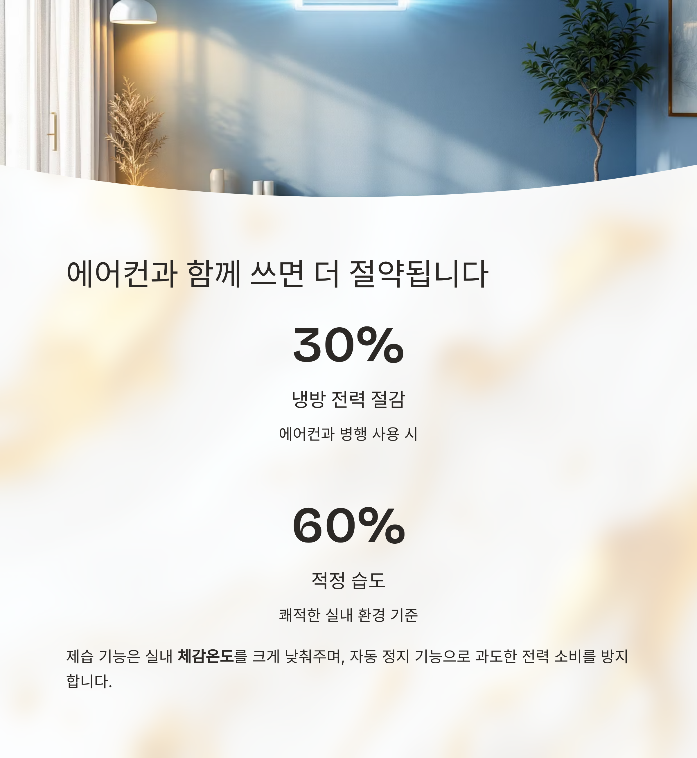 에어컨과 병행 사용 시 냉방 전력을 최대 30%까지 절감할 수 있는 장점이 있습니다.