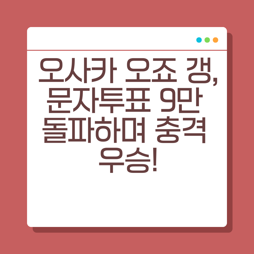 오사카 오죠 갱이 마침내 우승을 거머쥐었습니다. 문자투표만 무려 9만 건을 돌파하며 팬들의