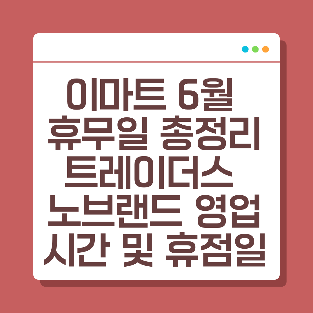 이마트와 트레이더스, 6월 언제 쉬나요? 영업시간부터 휴무일까지 한눈에 확인하세요