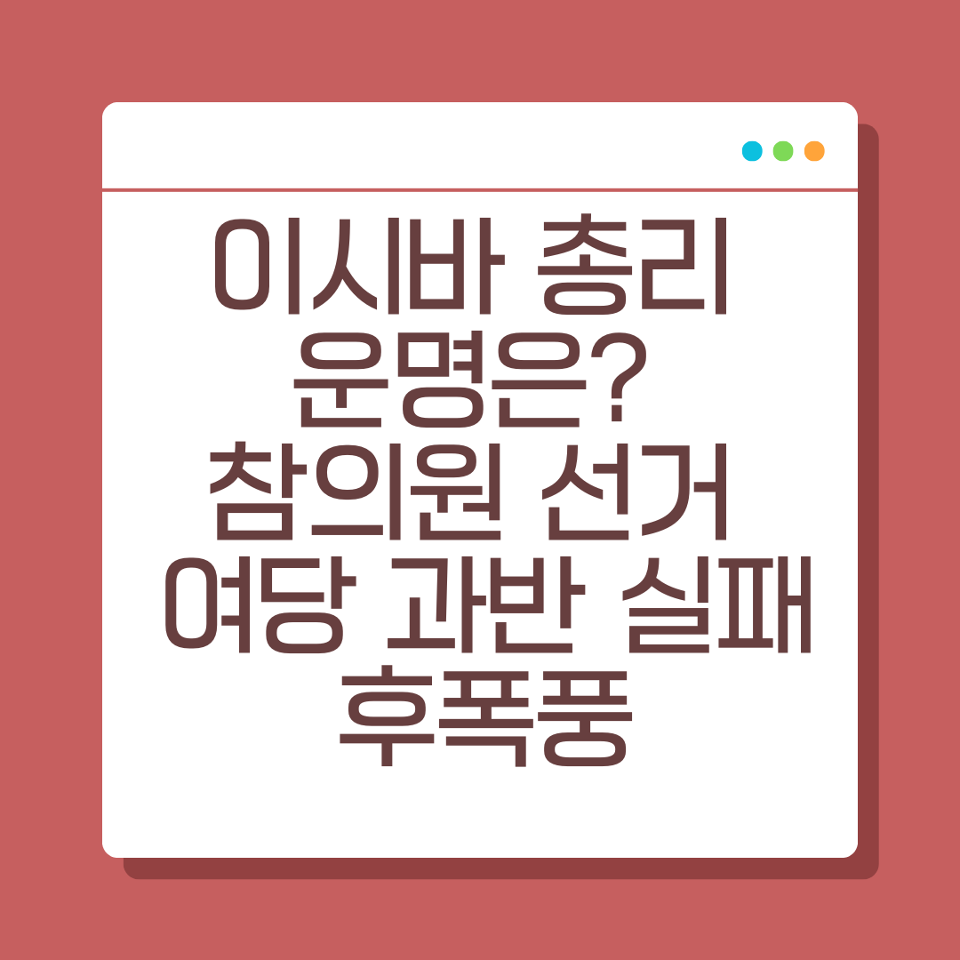 참의원 선거 결과, 여당 과반 실패… 이시바 내각 흔들리나?