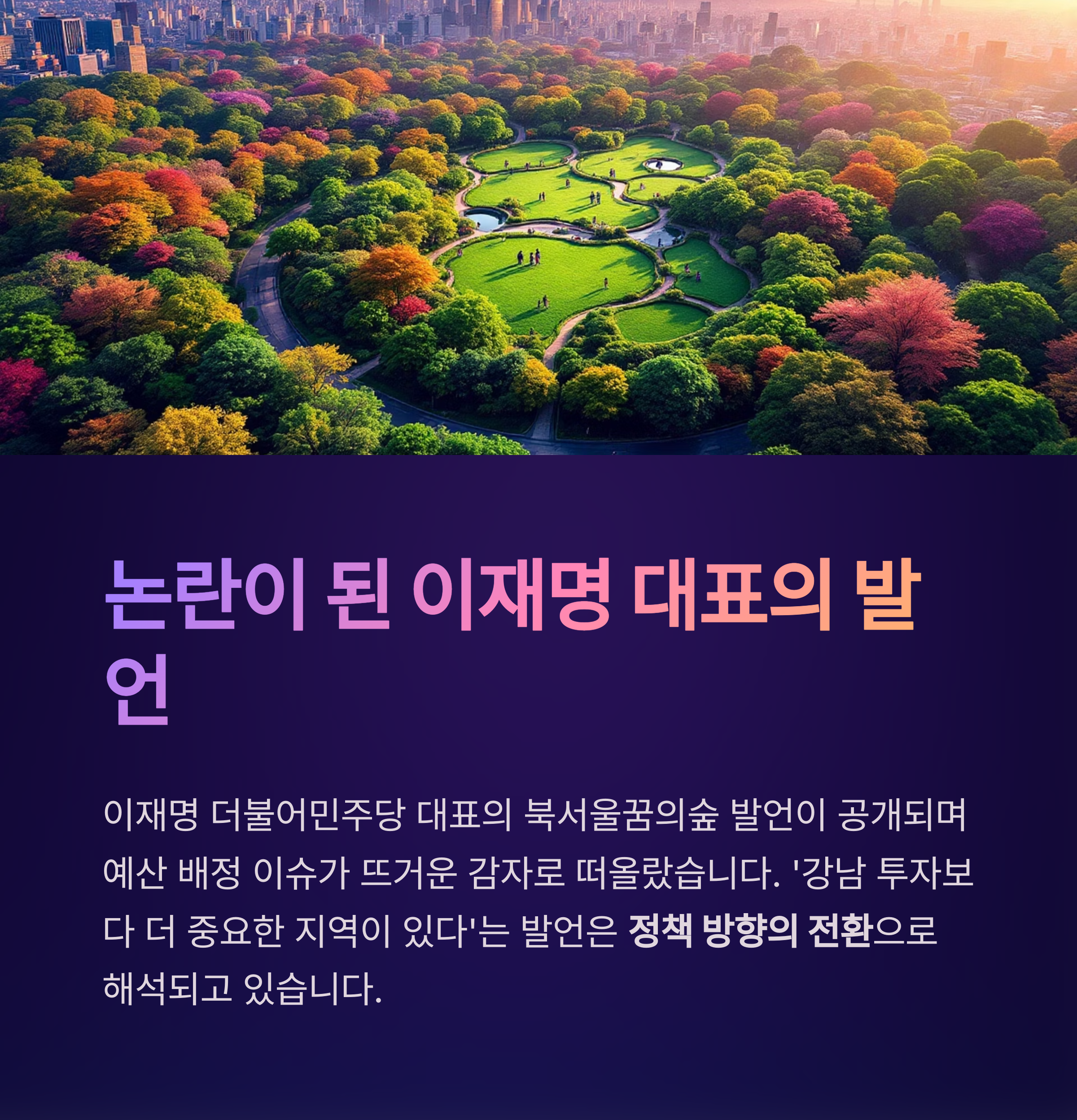 이재명 대표의 북서울꿈의숲 발언이 논란의 중심에 섰습니다