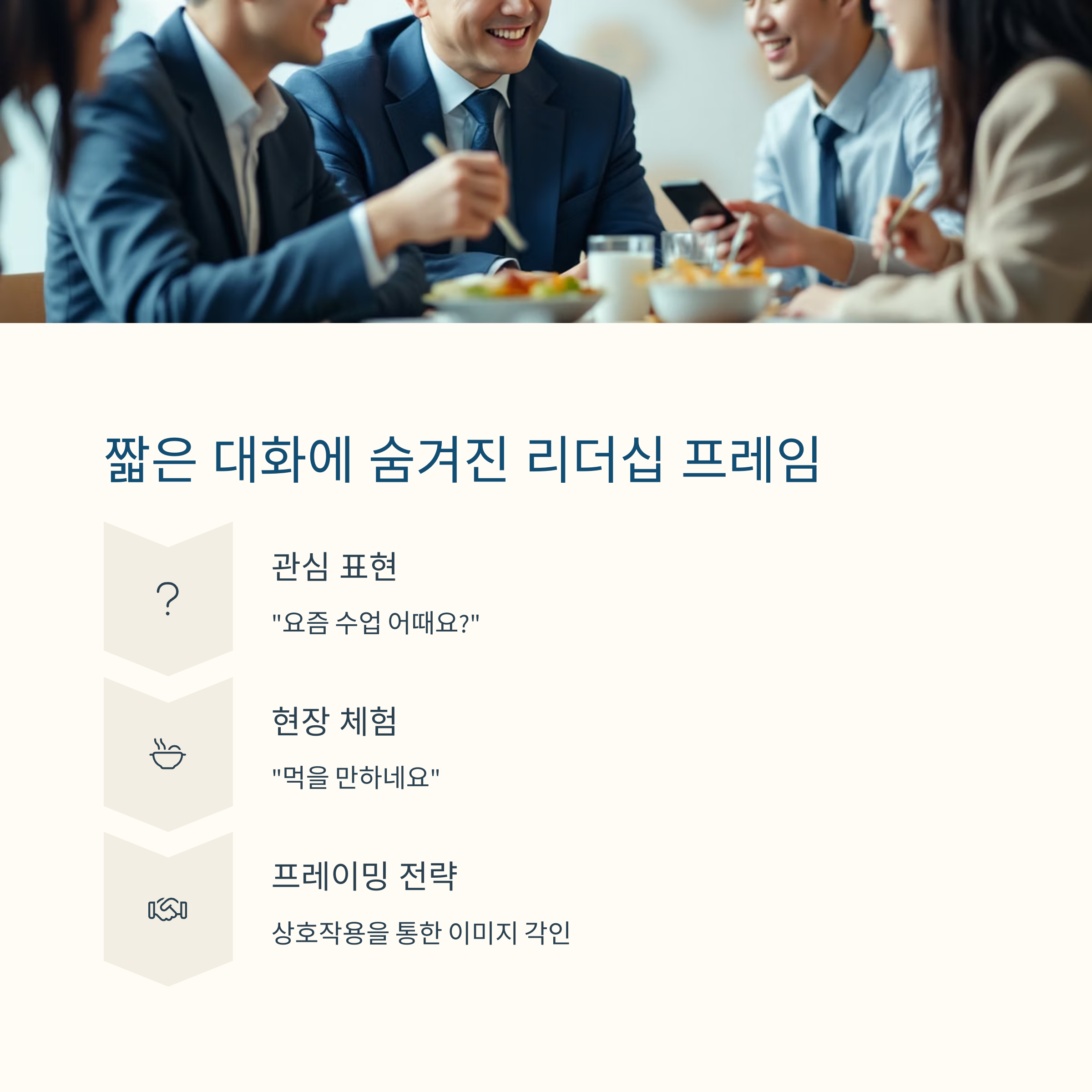 "먹을 만하네요"는 현장의 평범함을 체험하는 리더로서 자신을 각인시키는 대사였습니다.