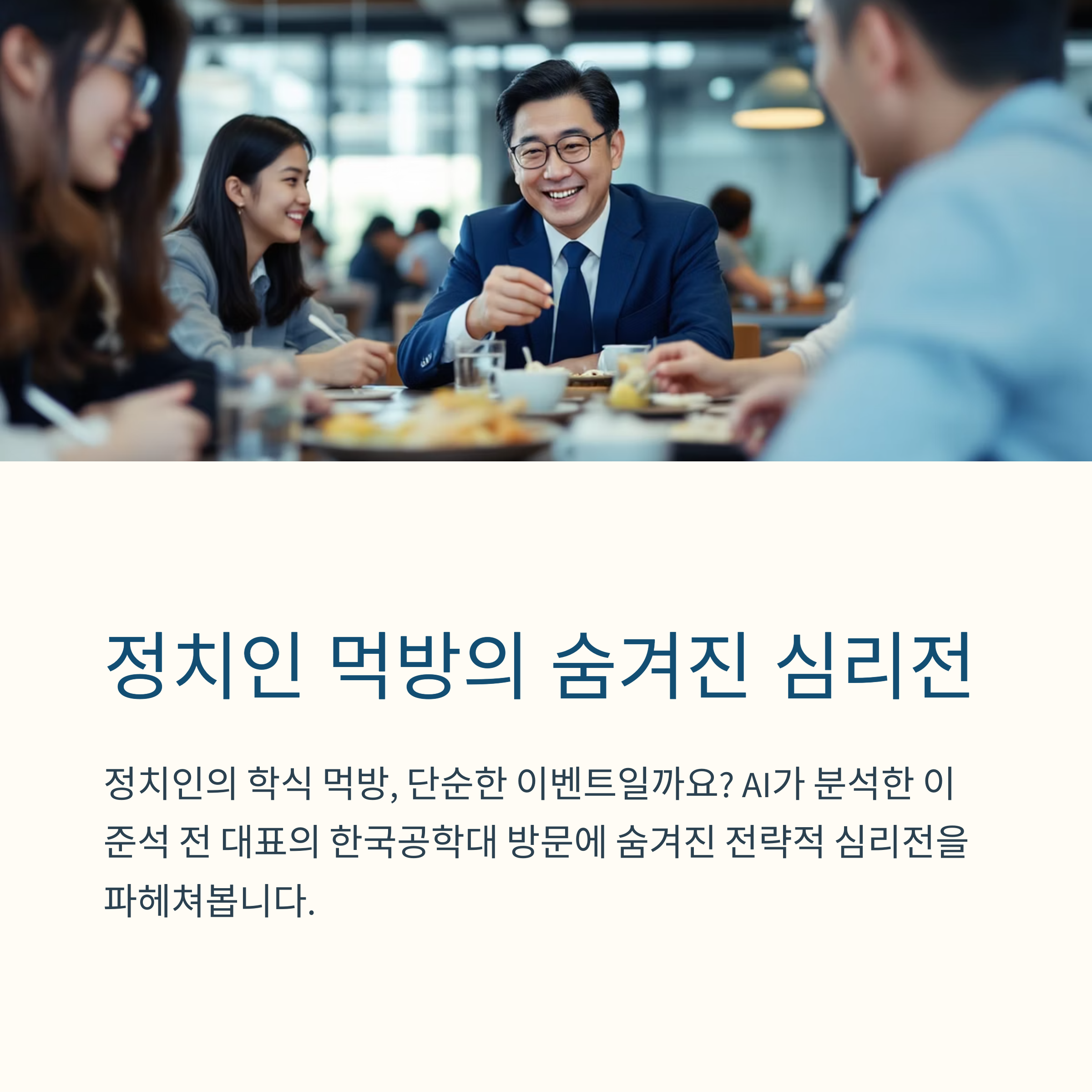 정치인의 먹방, 단순한 이벤트일까요? AI가 분석한 결과, 그 이면에는 전략적 심리전이 숨겨져 있었습니다. 한국공학대 학생들의 반응 속에서 무엇이 보였을까요?