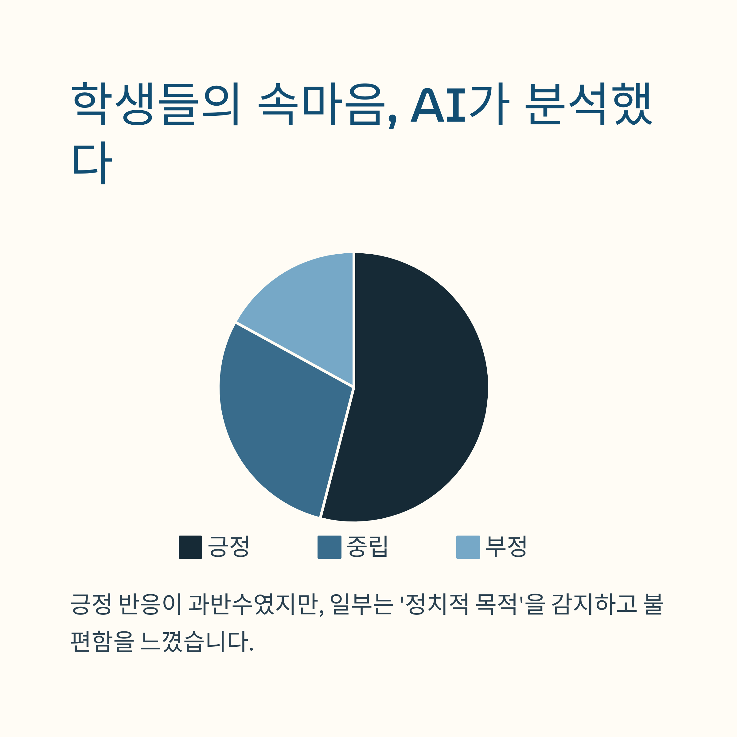 긍정 반응이 과반을 넘었지만, 일부 학생은 ‘정치적 목적’을 감지하고 불편함을 느꼈습니다.
