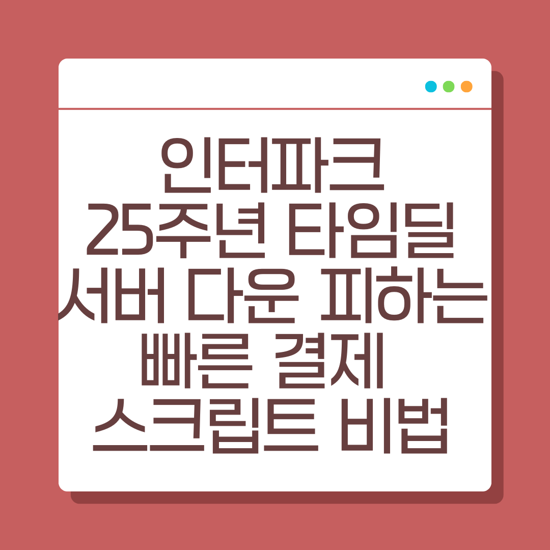 인터파크 25주년 타임딜이 열릴 때마다 순식간에 품절되는 인기 상품들. 하지만 매번 서버가 느려져 결제 실패를 경험하셨다면, 이번에는 조금 다르게 접근해보시길 바랍니다. 본 글에서는 자동화 도구나 매크로가 아닌, 웹 브라우저 기반으로 사용할 수 있는 '빠른 결제 스크립트'의 개념과 준비 방법, 사용 팁까지 안내드립니다.