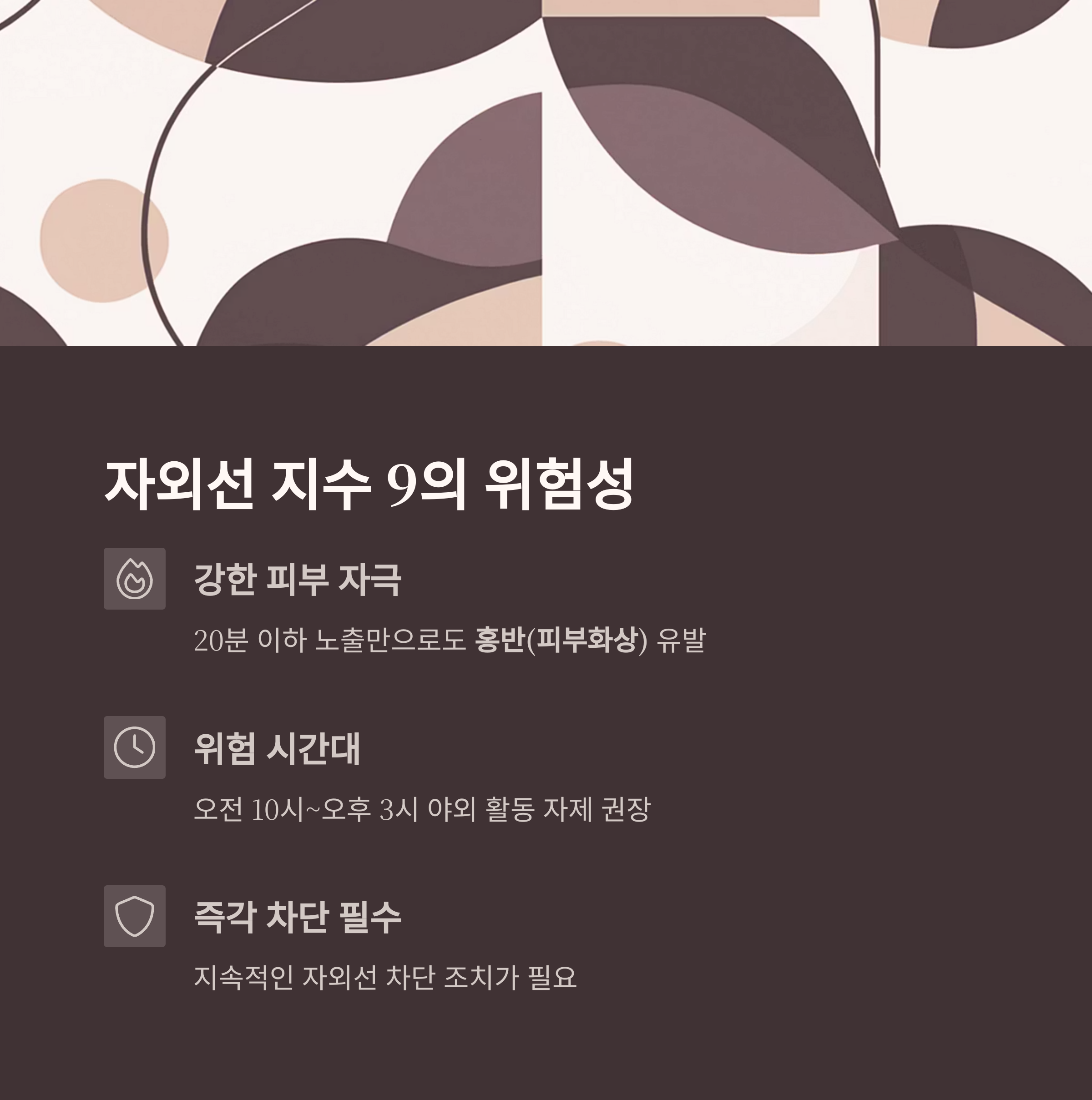 자외선 지수 9는 피부에 매우 강한 자극을 줄 수 있으며,