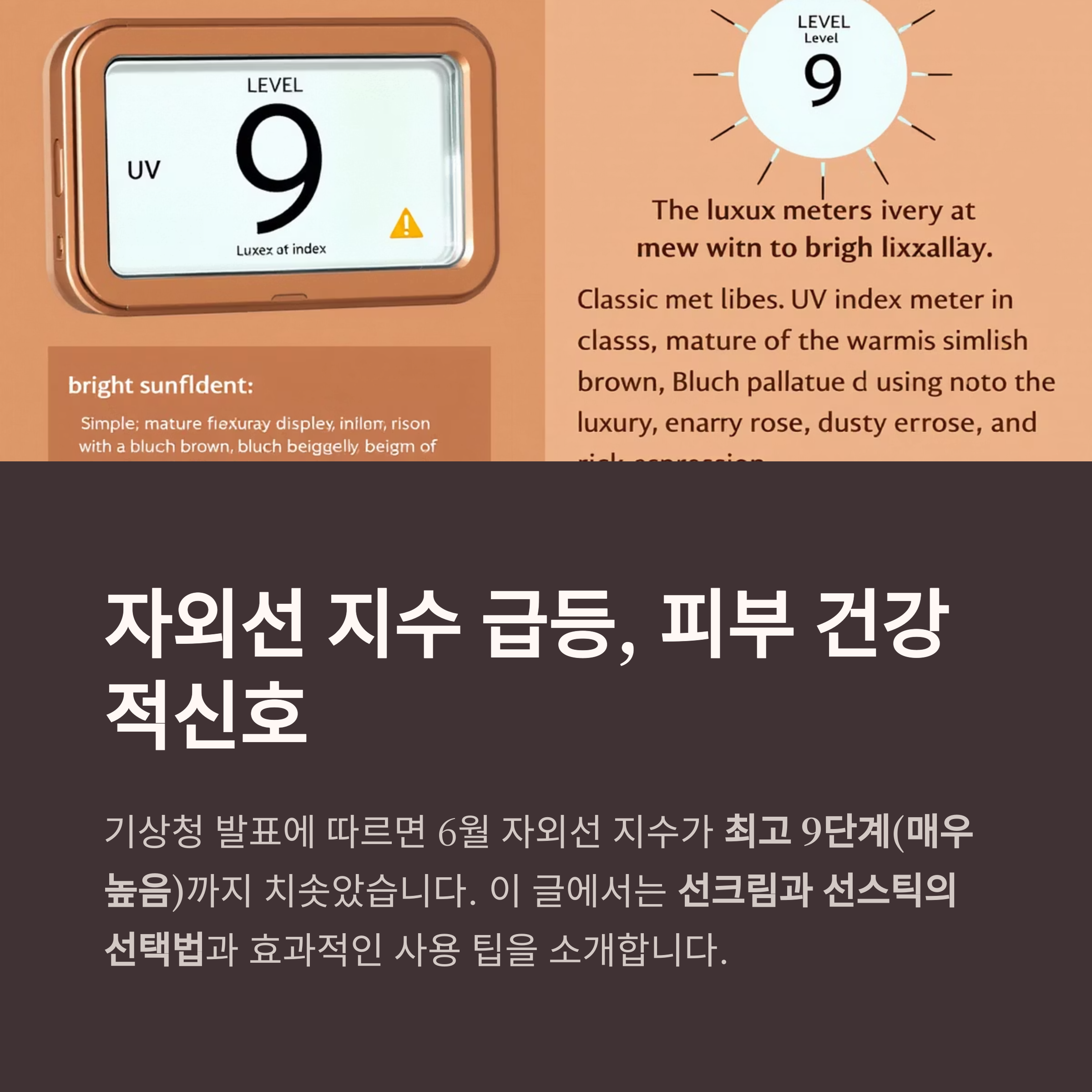 최근 기상청 발표에 따르면 6월 자외선 지수가 **최고 9단계(매우 높음)**까지 치솟으며