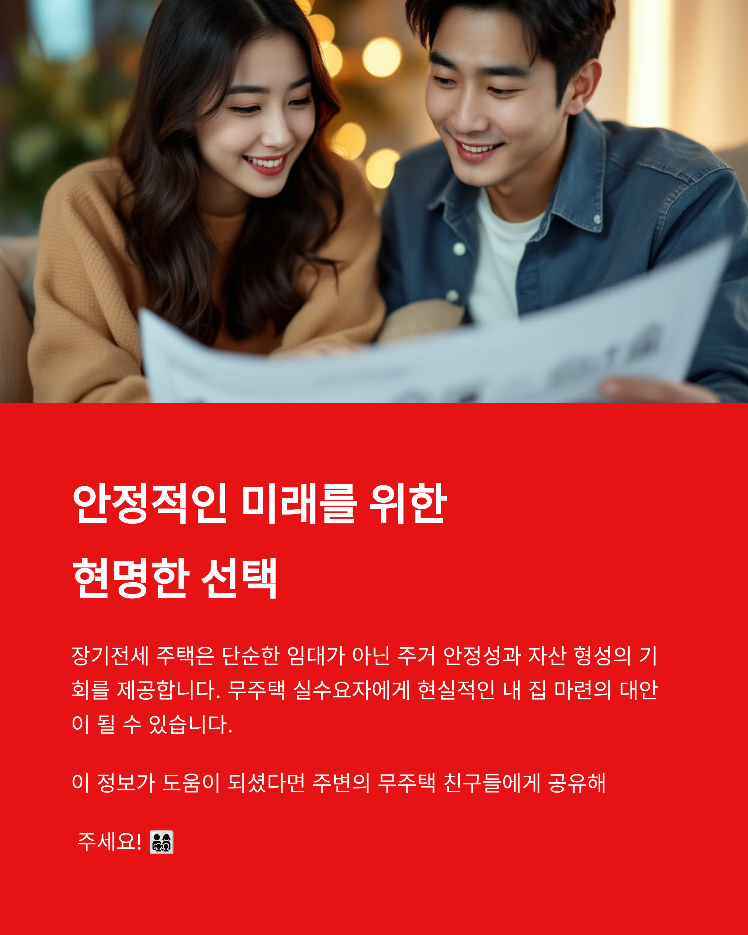 장기전세는 단순한 거주 공간을 넘어, 주거 안정성과 자산 형성의 시작점이 될 수 있습니다. 특히 젊은 세대에게는 주거비 절감뿐 아니라 미래를 준비할 수 있는 시간과 여유를 주는 가치 있는 기회가 됩니다. 지금부터라도 각 지역 공공기관의 공급 공고를 주기적으로 확인하고, 조건이 맞는다면 신청을 고려해보는 것이 좋습니다.