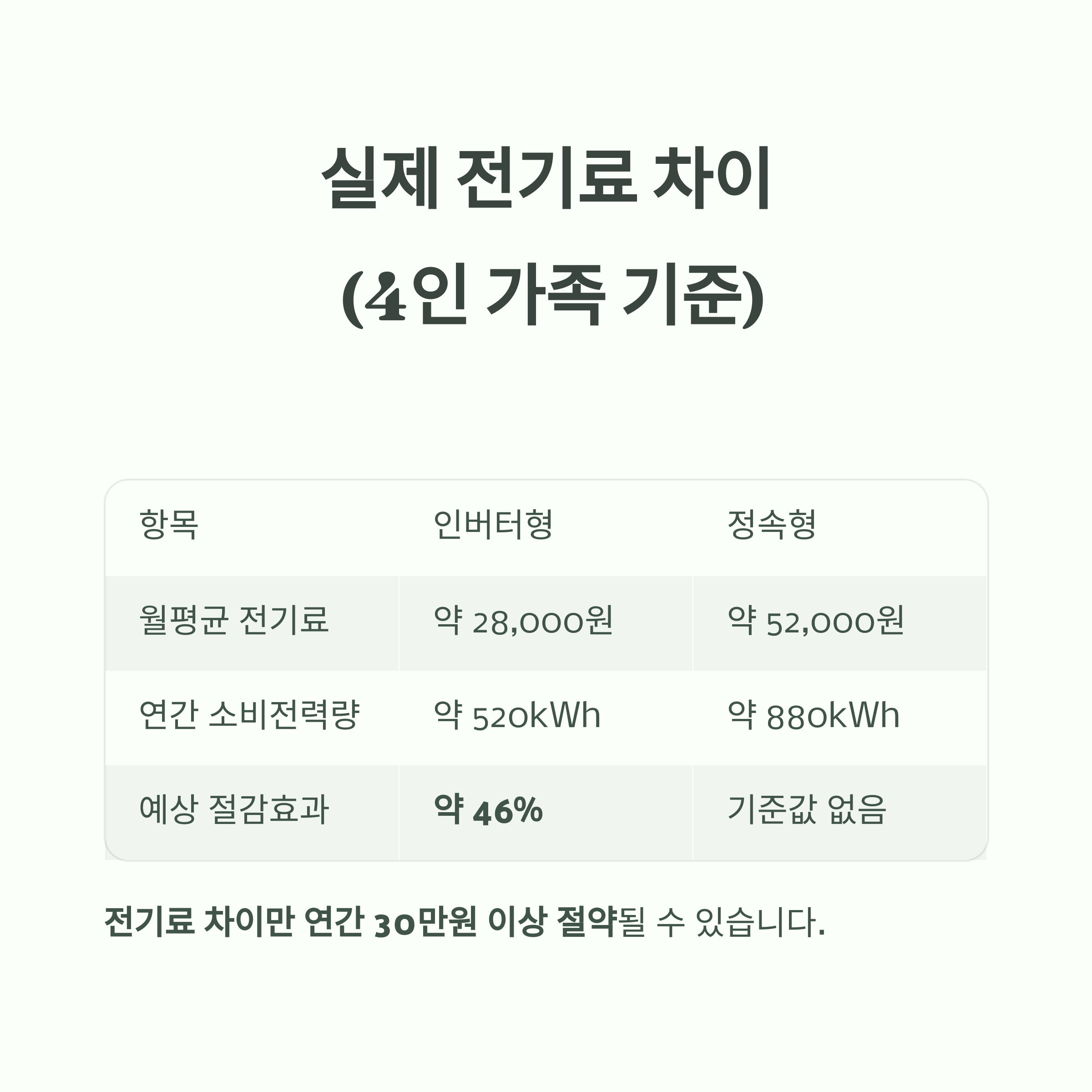 결론: 전기료 절감 원한다면 인버터형이 정답