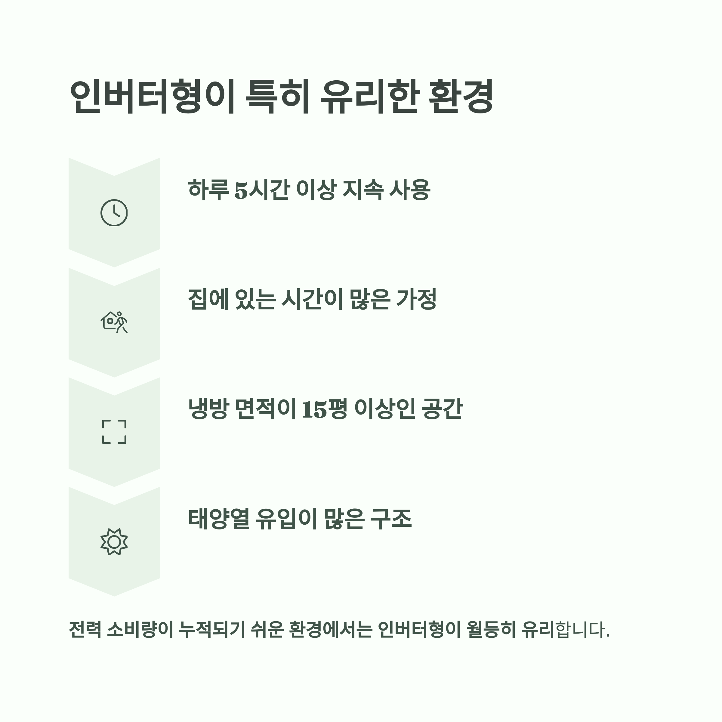 장기적으로 볼 때 인버터형은 가성비 높은 선택입니다.