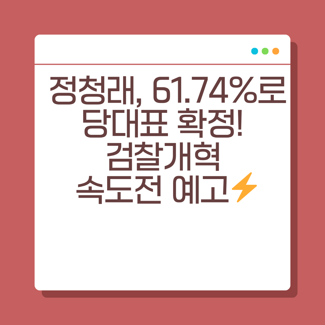 정청래 의원이 61.74%라는 압도적 득표율로 더불어민주당 당대표에 선출되었습니다.
