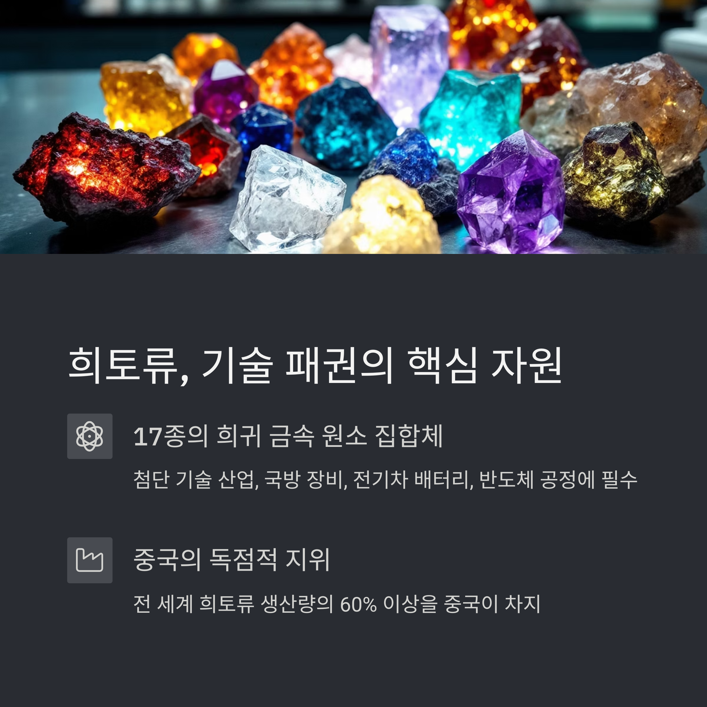 희토류는 단순한 자원이 아니라, 국가 간 힘의 균형을 바꾸는 외교적 무기라는 점입니다