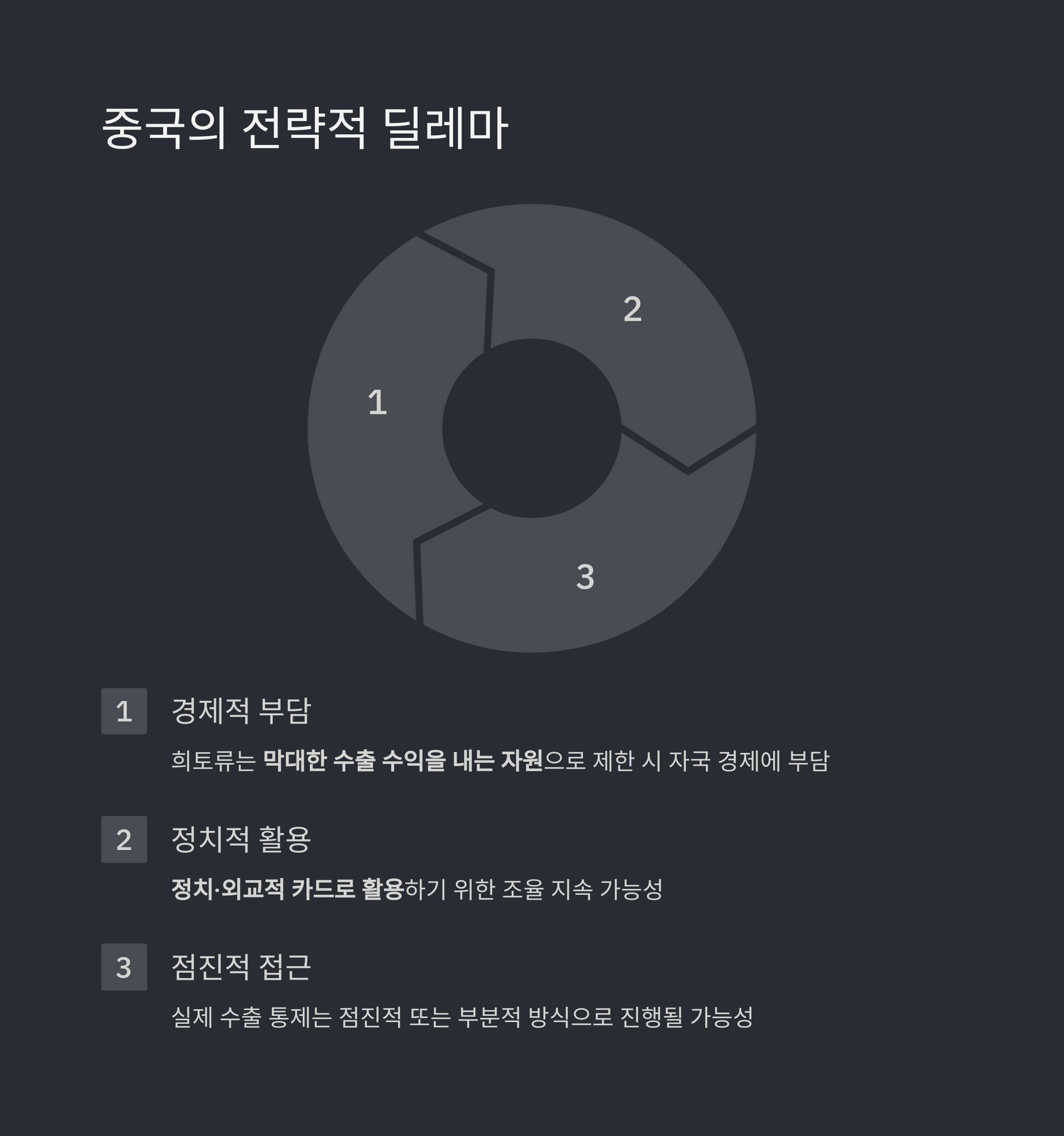 희토류 수출 통제를 주요 전략으로 채택할 가능성이 거론되고 있습니다