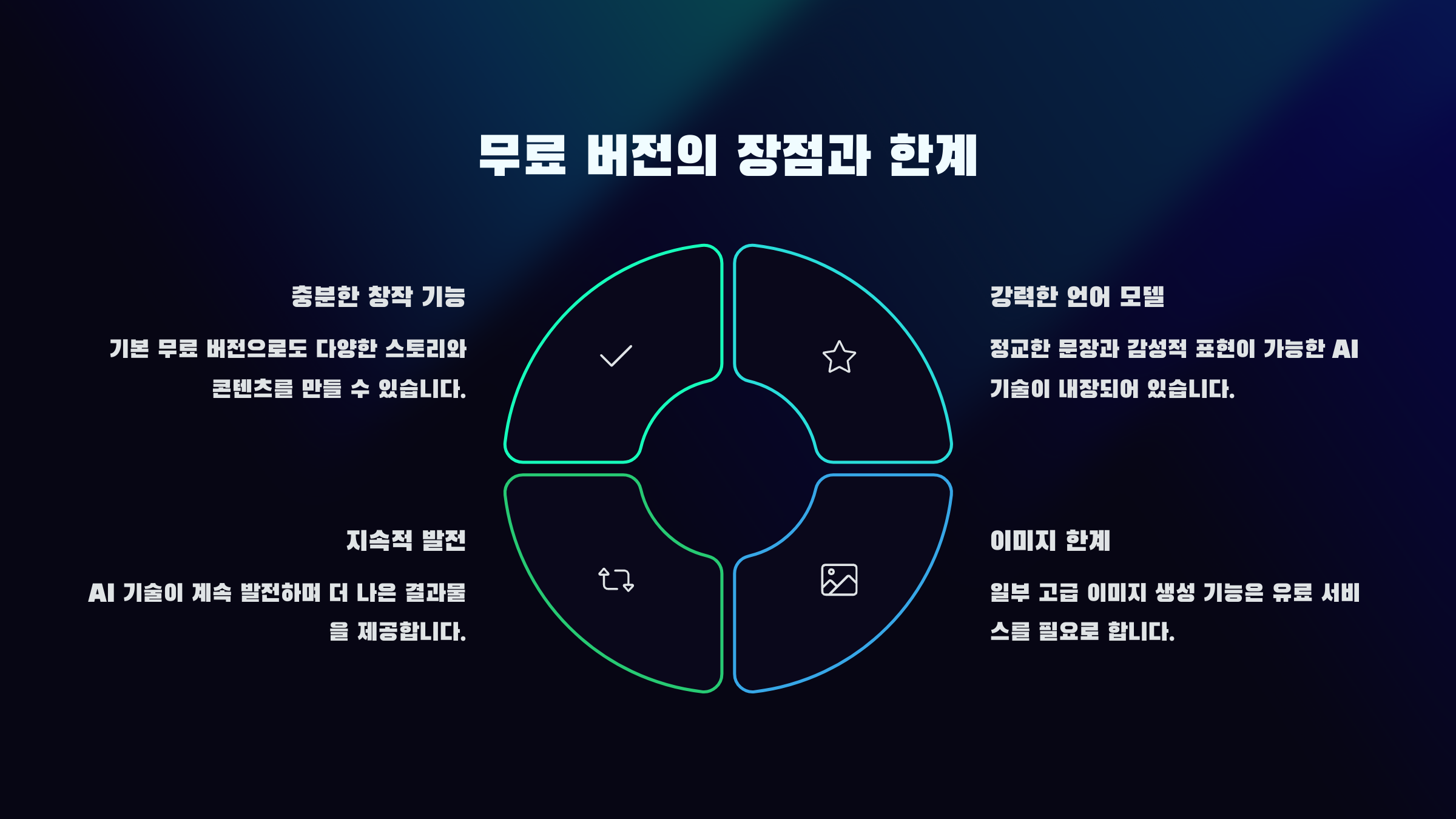 | 프롬프트 작성이 핵심 | 지시어로 감성 조절 가능 | 무료로도 고퀄 콘텐츠 제작 |
