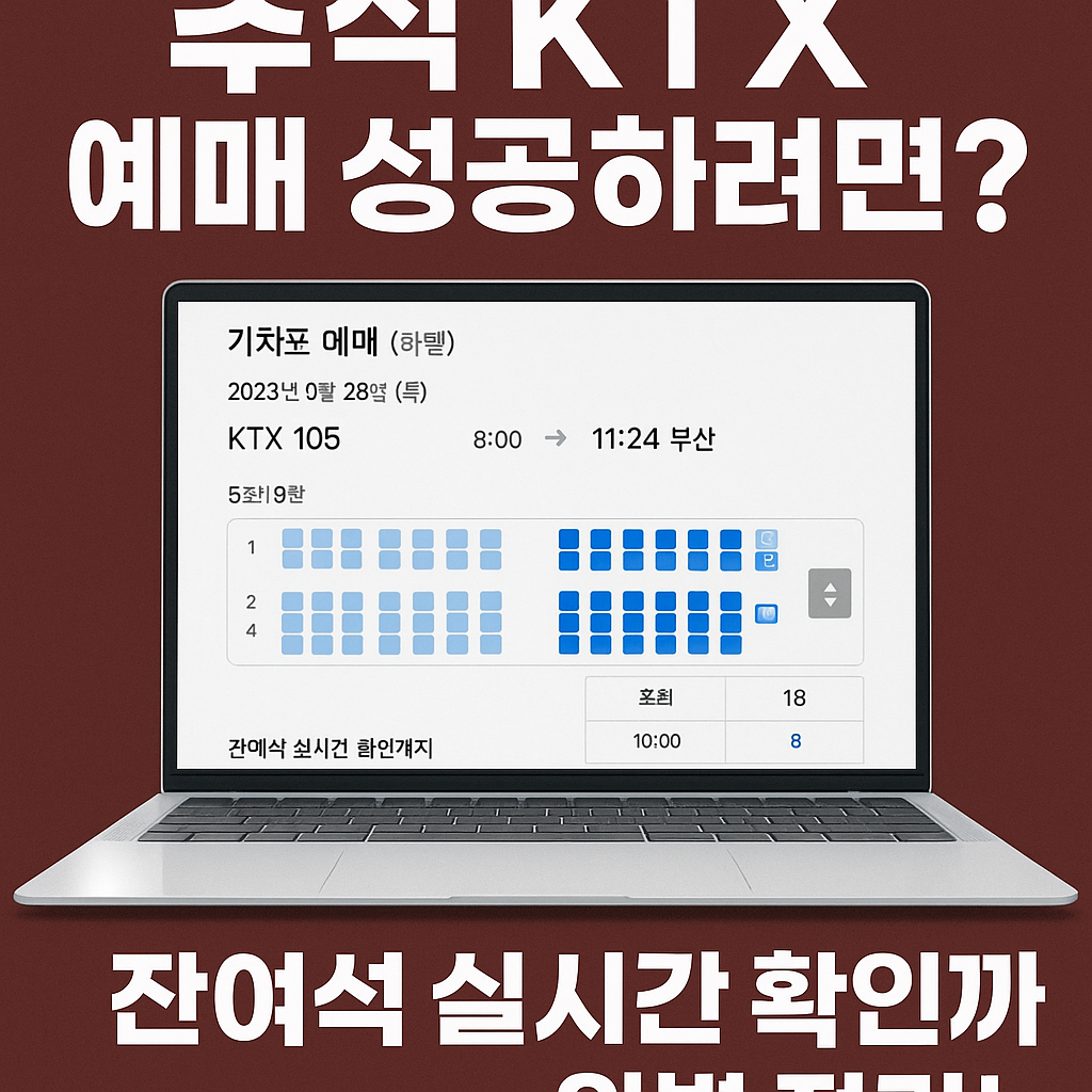 추석 명절이 코앞으로 다가오면서 KTX 기차표 예매에 대한 관심이 치솟고 있습니다. 매년 반복되는 예매 대란 속에서도 빠르게 좌석을 확보하기 위해서는 미리 준비된 전략이 필수입니다. 이번 글에서는 예매 성공을 위한 실질적인 꿀팁부터 잔여석 확인 방법, 예매 실패 시 대처 방안까지 모두 정리해 드립니다.