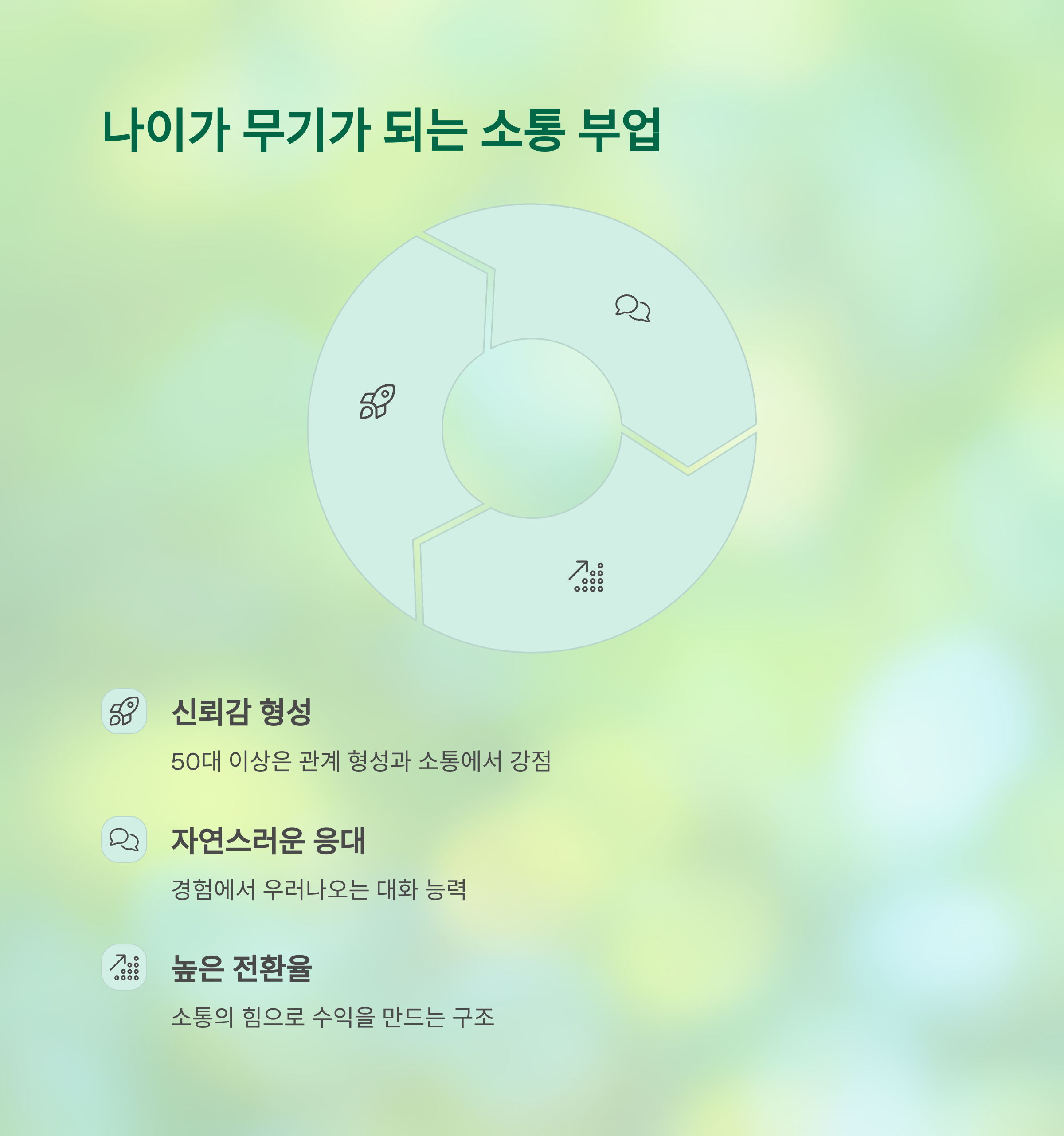 50대 이상은 오히려 관계 형성과 소통에서 강점을 가지는 세대입니다.
