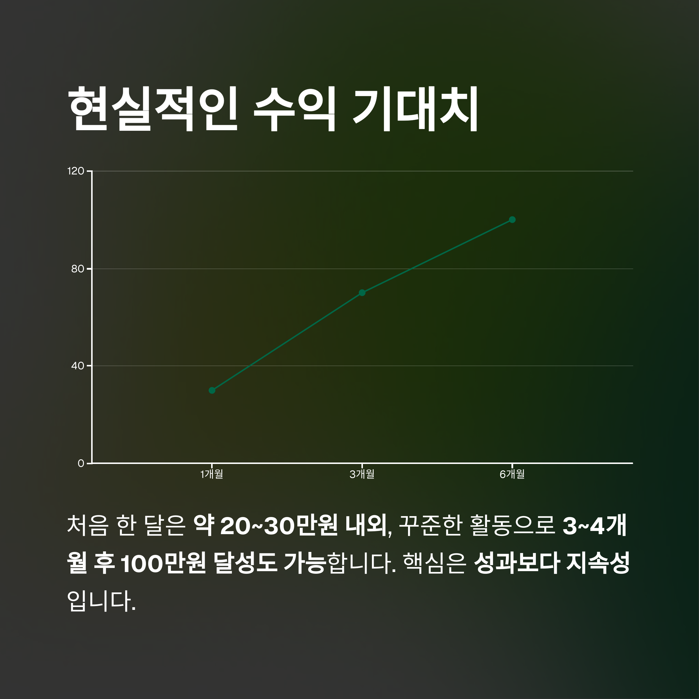 꾸준한 활동으로 3~4개월 후 100만원 달성도 가능하다고 보고되고 있습니다.