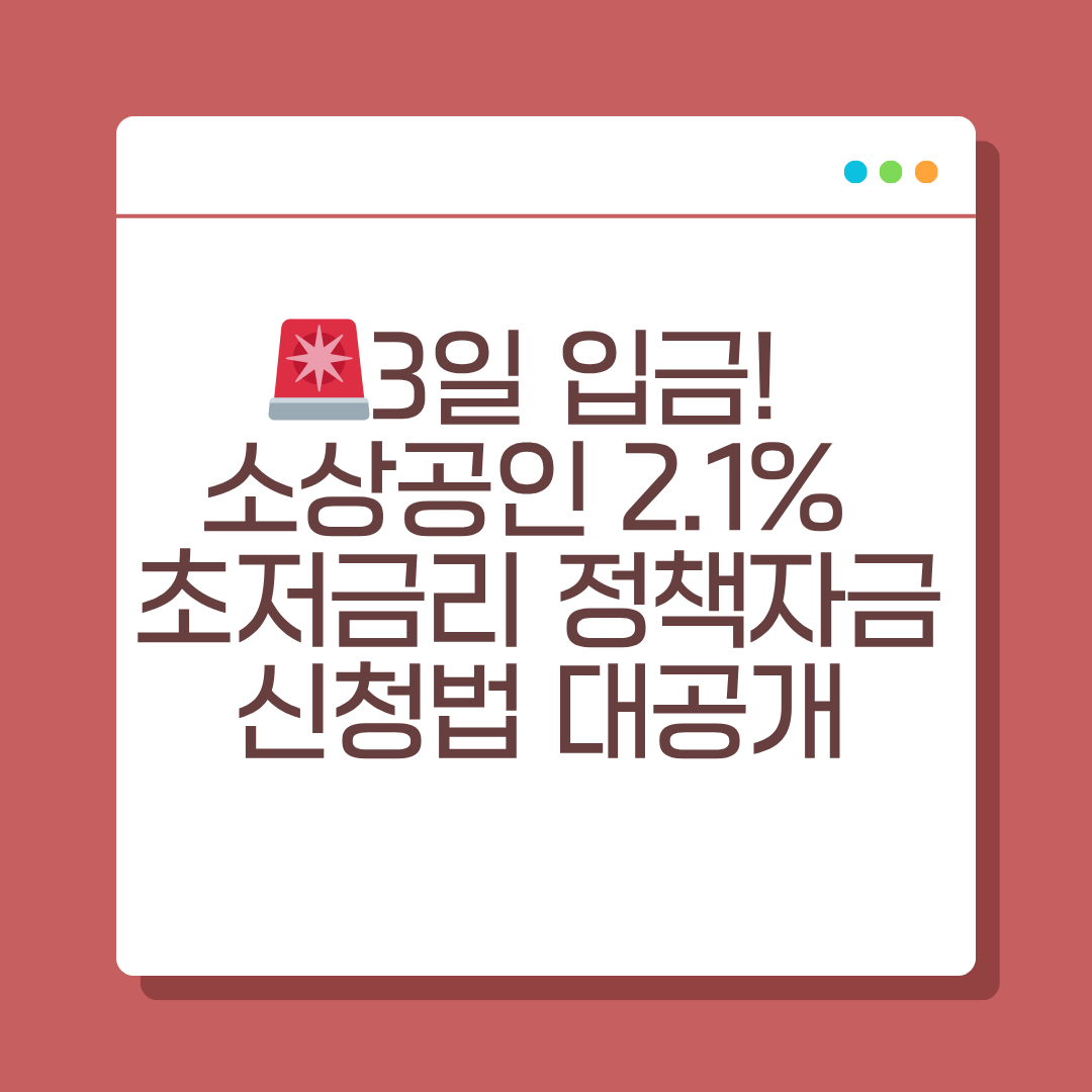 소상공인을 위한 2.1% 정책자금이 단 3일 만에 입금됩니다. 특히 매출 3억 이하 사업자라면