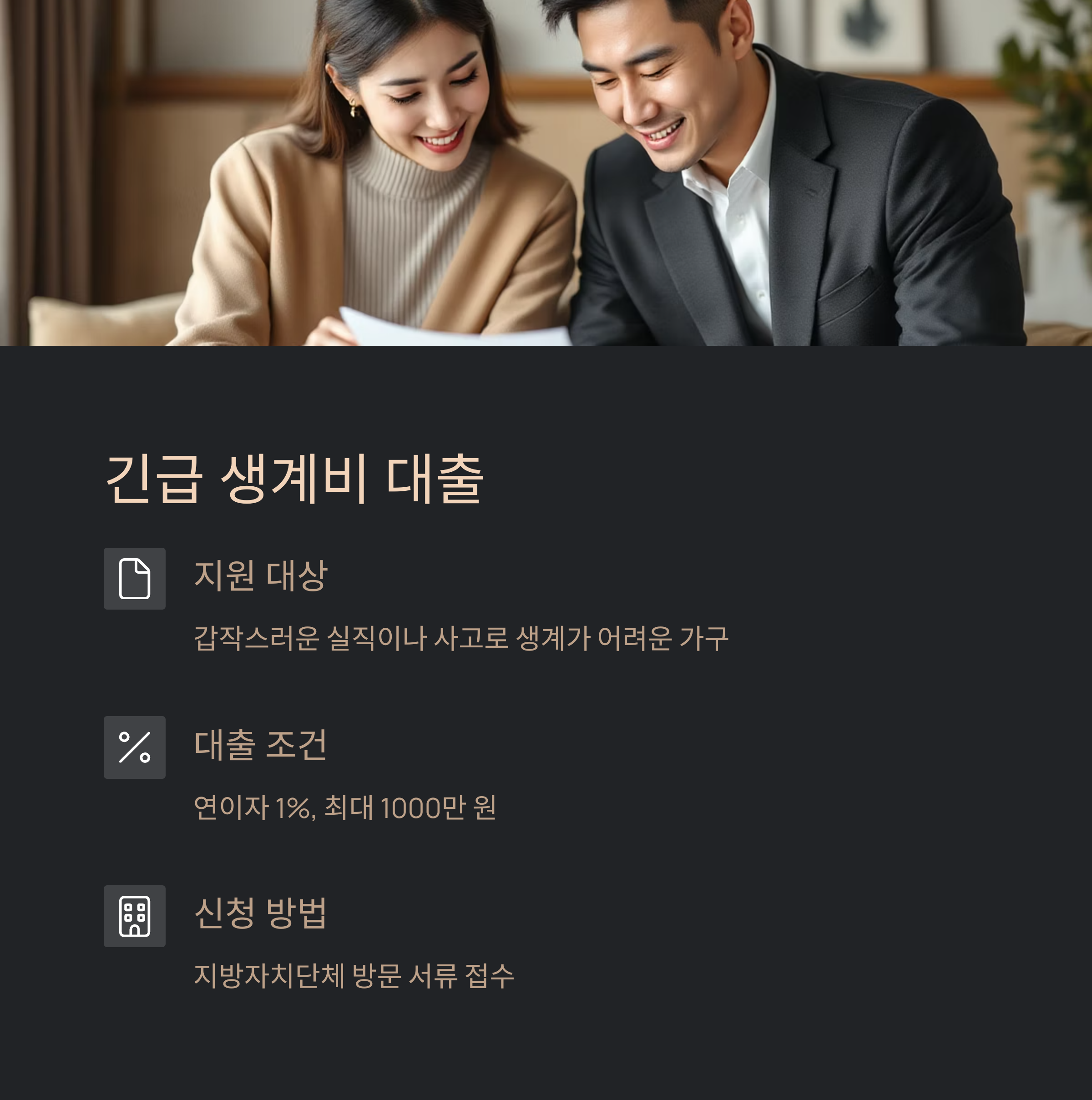 갑작스러운 실직이나 사고로 인해 생계가 어려운 가구를 위한 긴급 생계비 대출이 신설되었습니다.