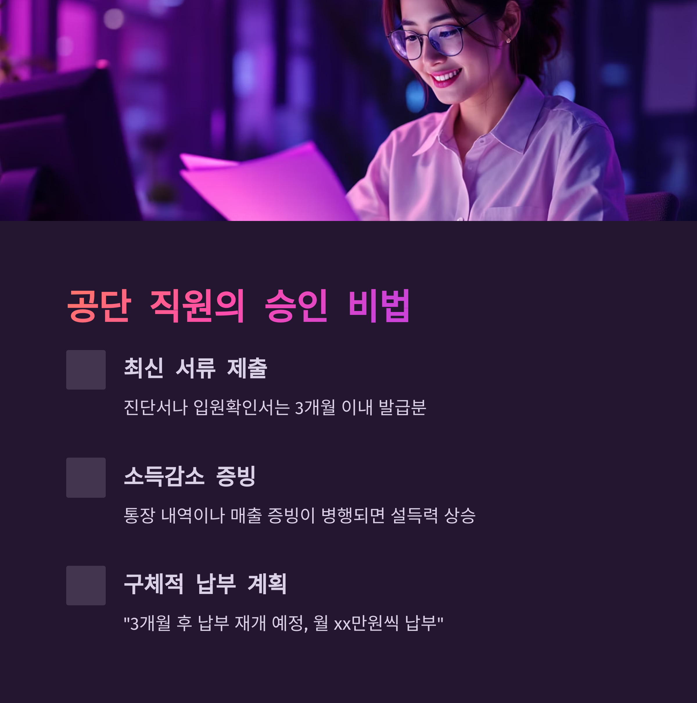 | 6개월 이상 연체 후 신청 | 승인 거절 가능성 높음 |