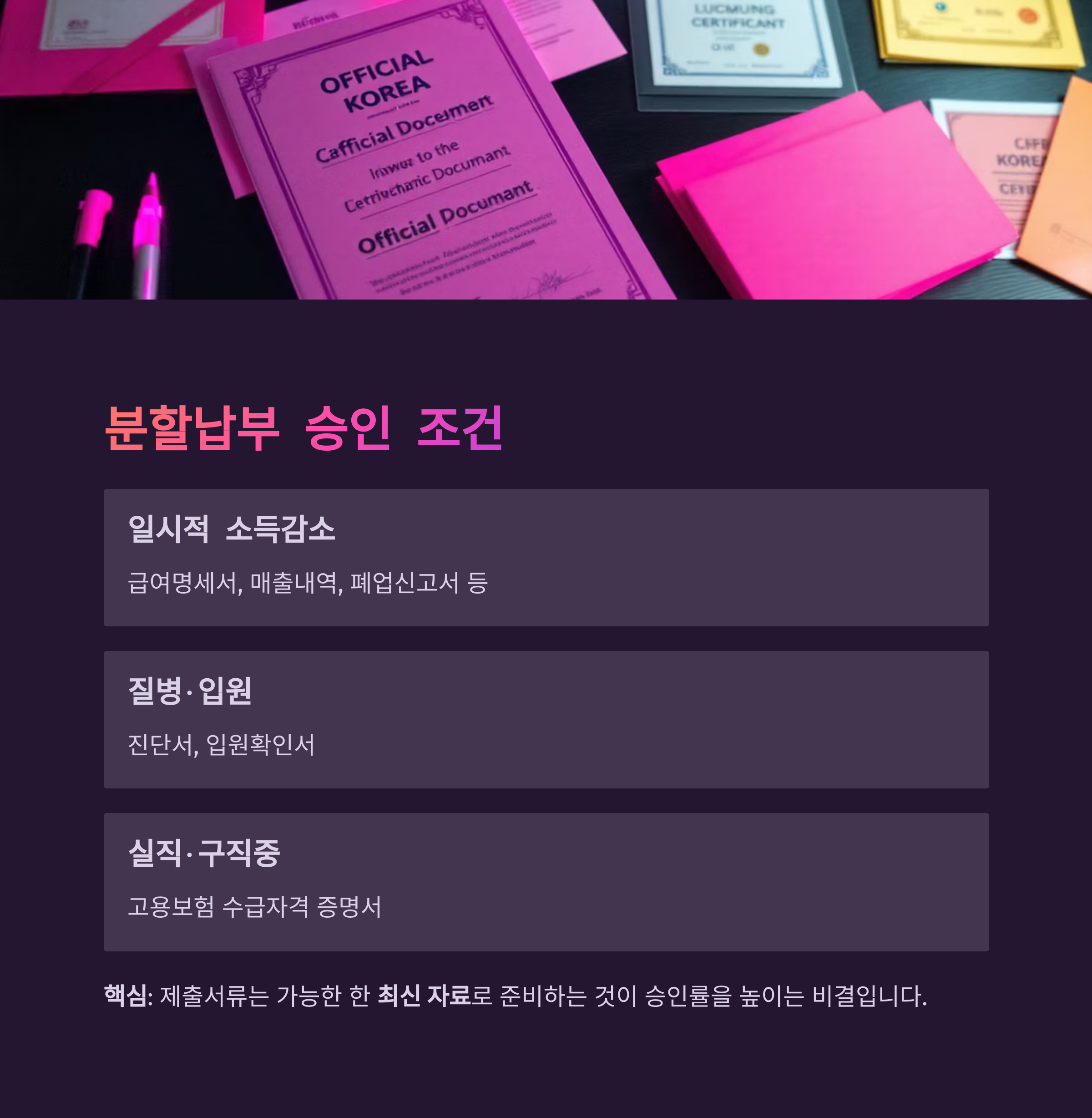 분할납부가 승인되는 대표적인 조건은 다음과 같습니다.