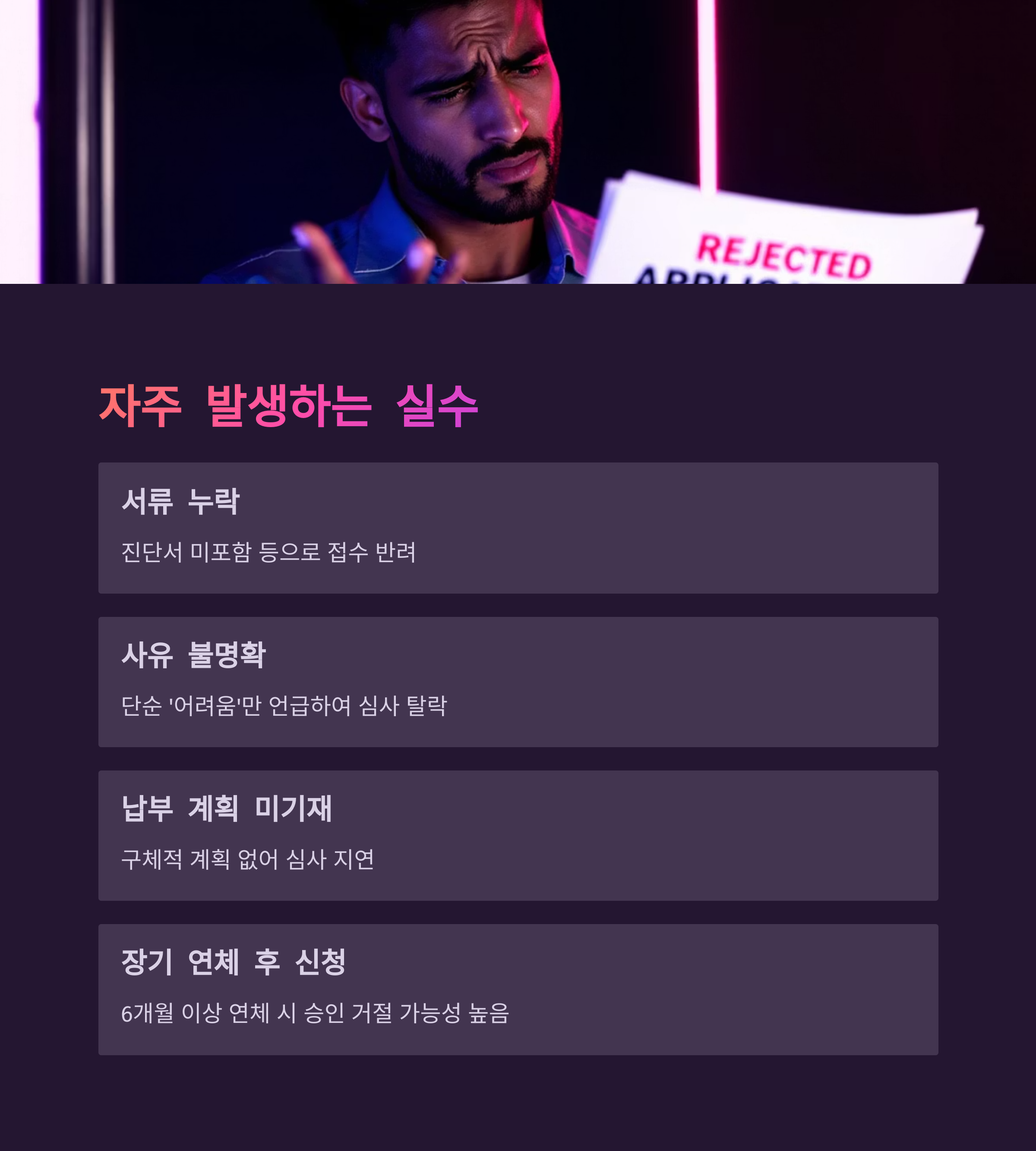 | 서류 누락 (진단서 미포함 등) | 접수 반려 |